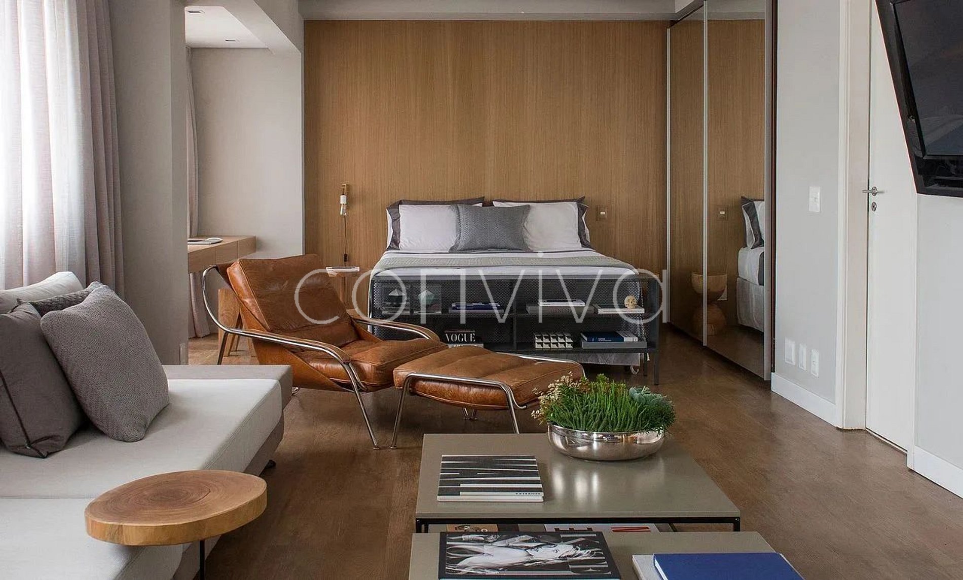 A 56m² space, on the 18th floor, with a spectacular view of Jardim Europa and Avenida Paulista. With a queen bed, sofa, bathroom and kitchenette. The apartment has a daily maid service.