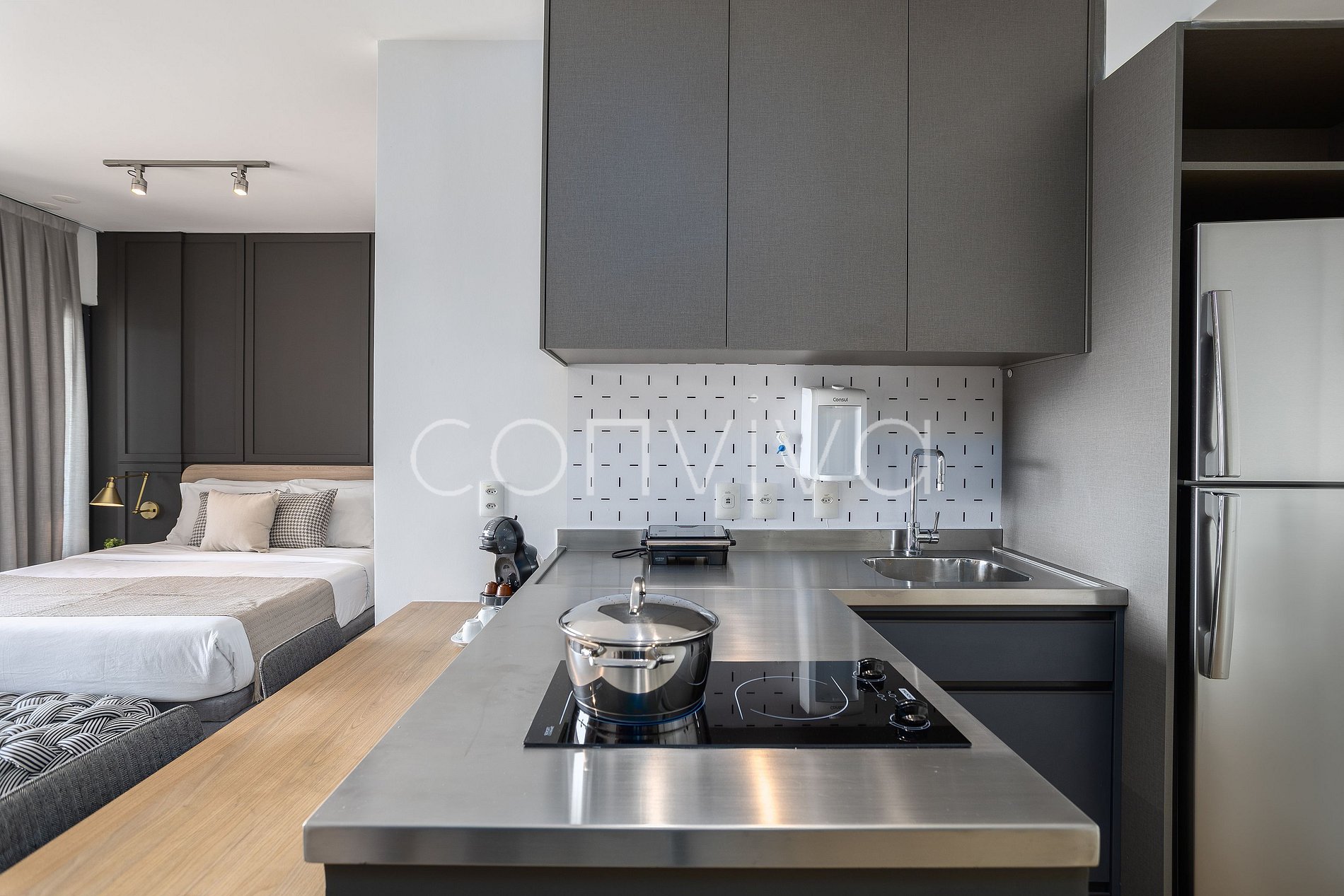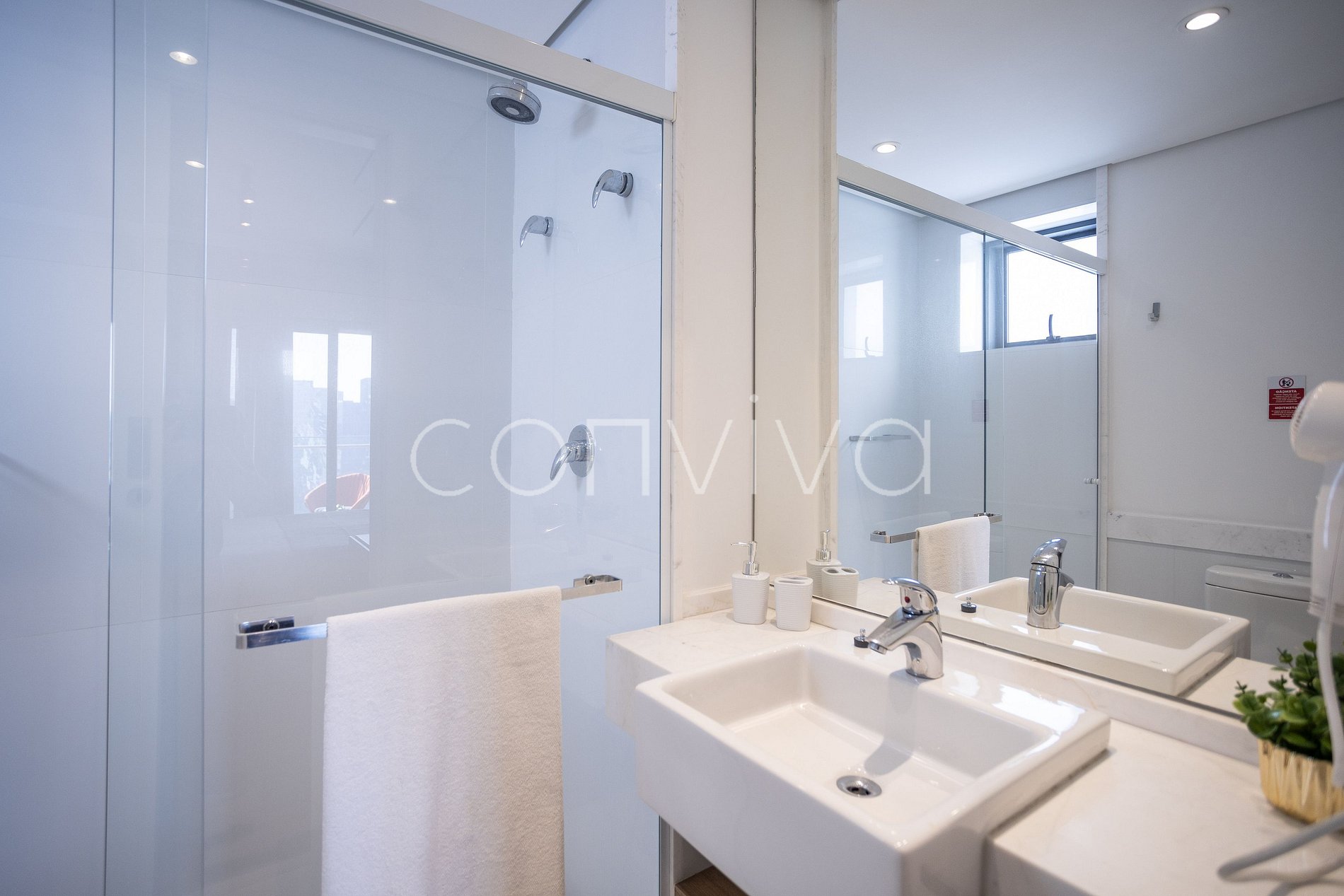 Forma Itaim has a rooftop pool and solarium, gym, indoor pool with lane, wet and dry sauna, spa and communal laundry.