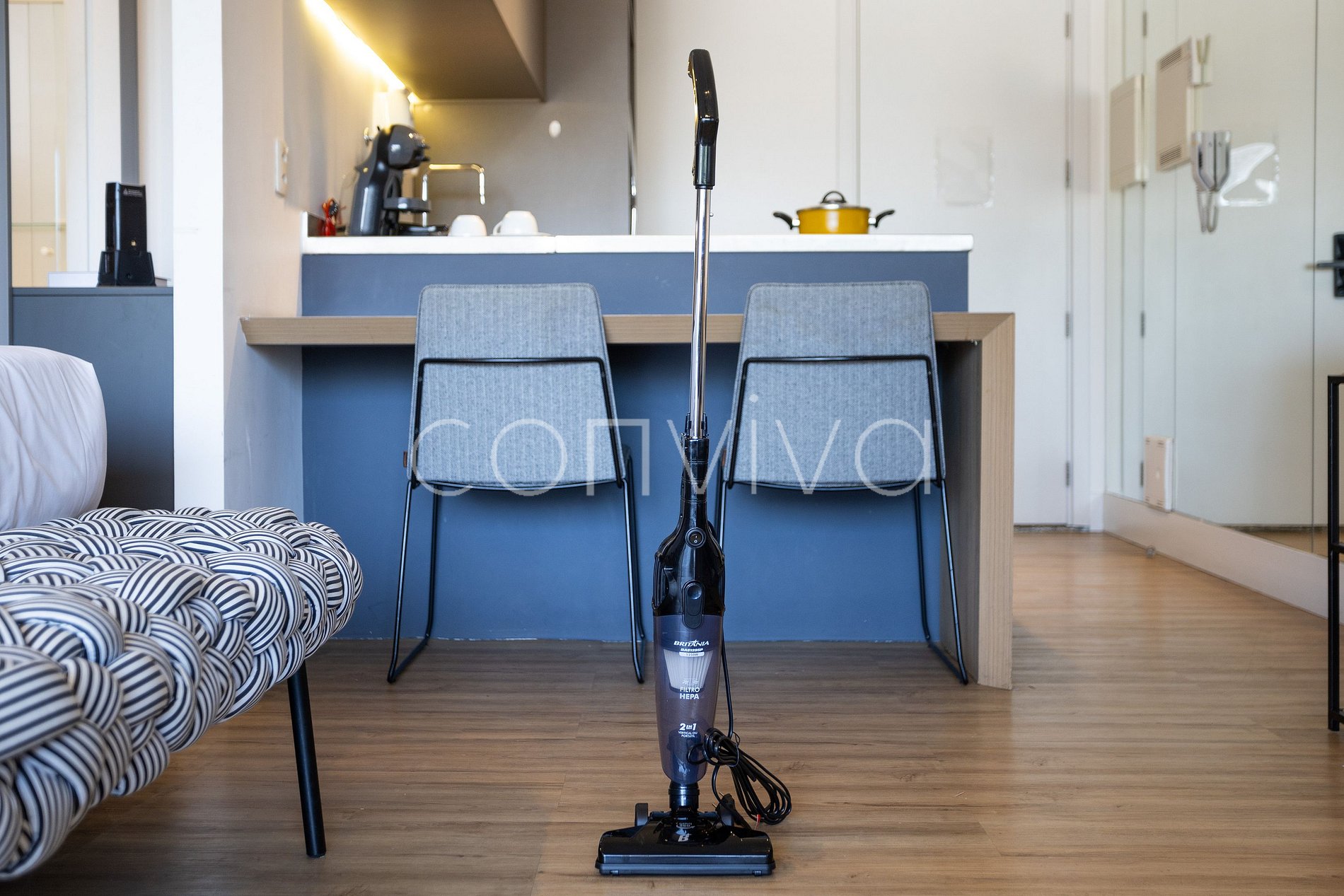 Com 45m², localizado no 3º andar, cama queen size, banheiro e cozinha compacta, o apartamento possui um ambiente super aconchegante.