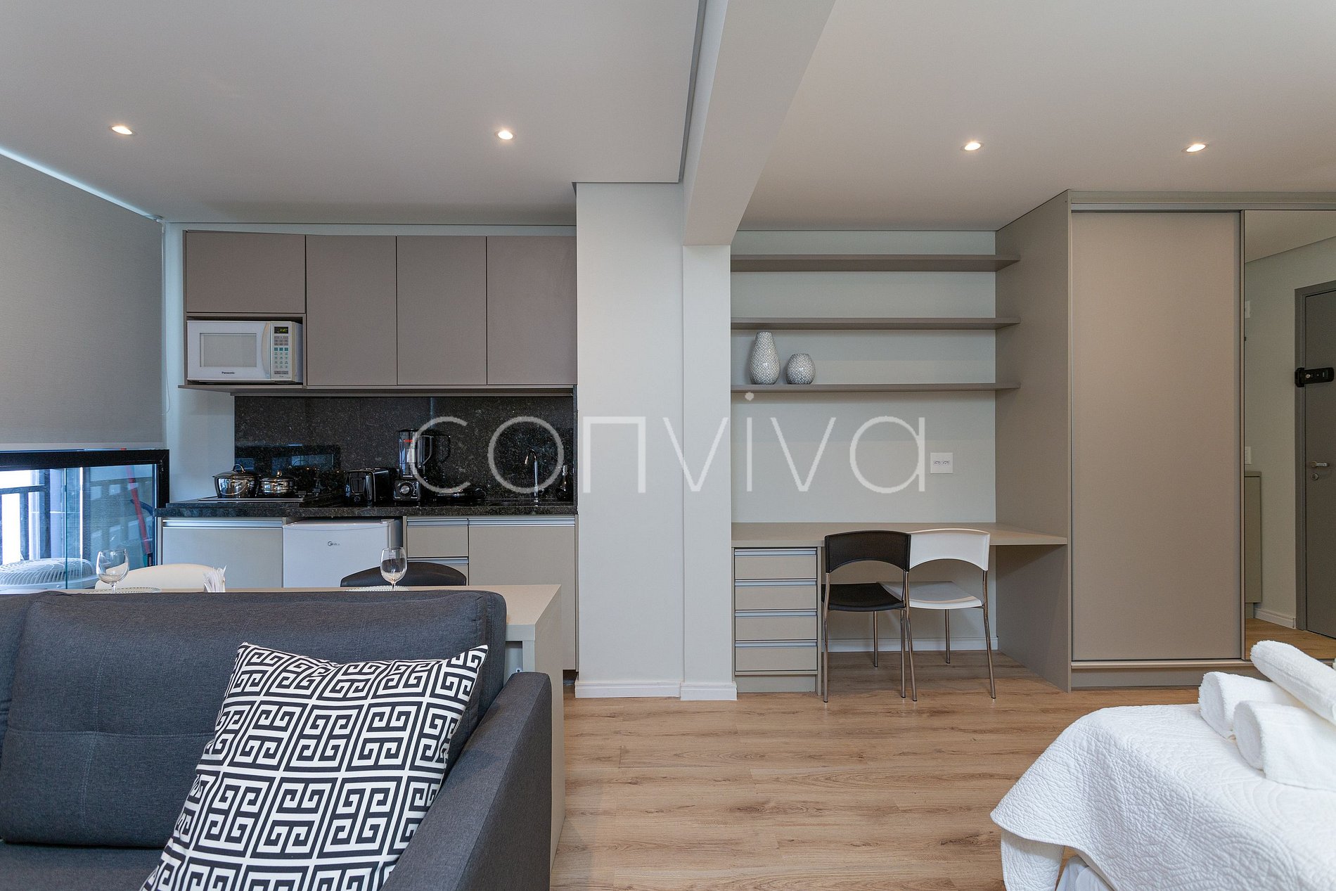 The building has a 24-hour concierge, laundry with pay-per-use machines, games room, co-working space, home theater, swimming pool and gym, a practical and modern environment.