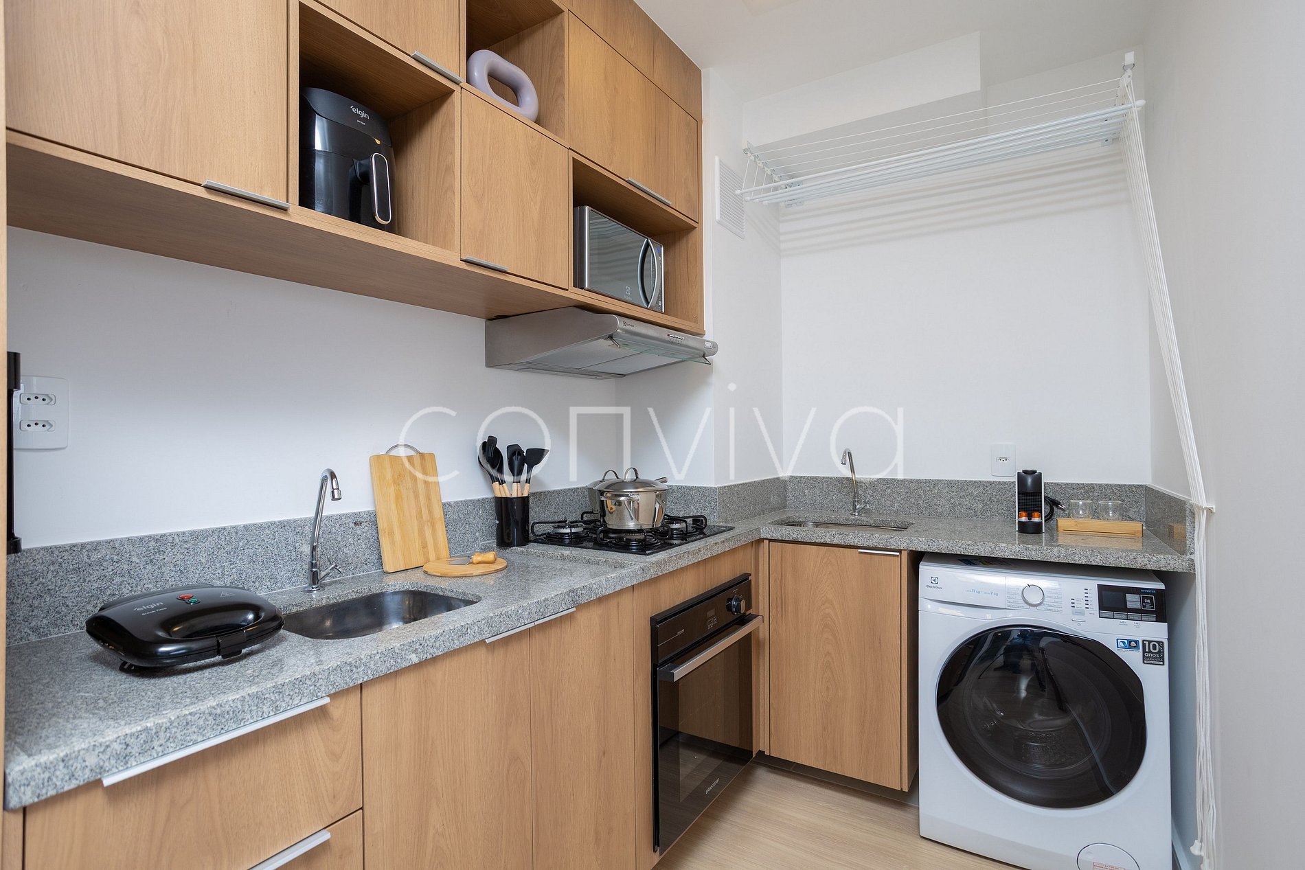 Localizado no charmoso bairro de Moema, este moderno apartamento de 36m² no 16º andar oferece o máximo de conforto e praticidade para a sua estadia em São Paulo, ideal para quem busca uma experiência única, seja a lazer ou a negócios.
