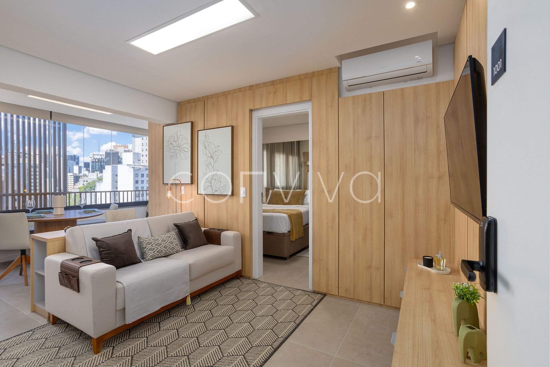 • Ar-condicionado na sala e no quarto;