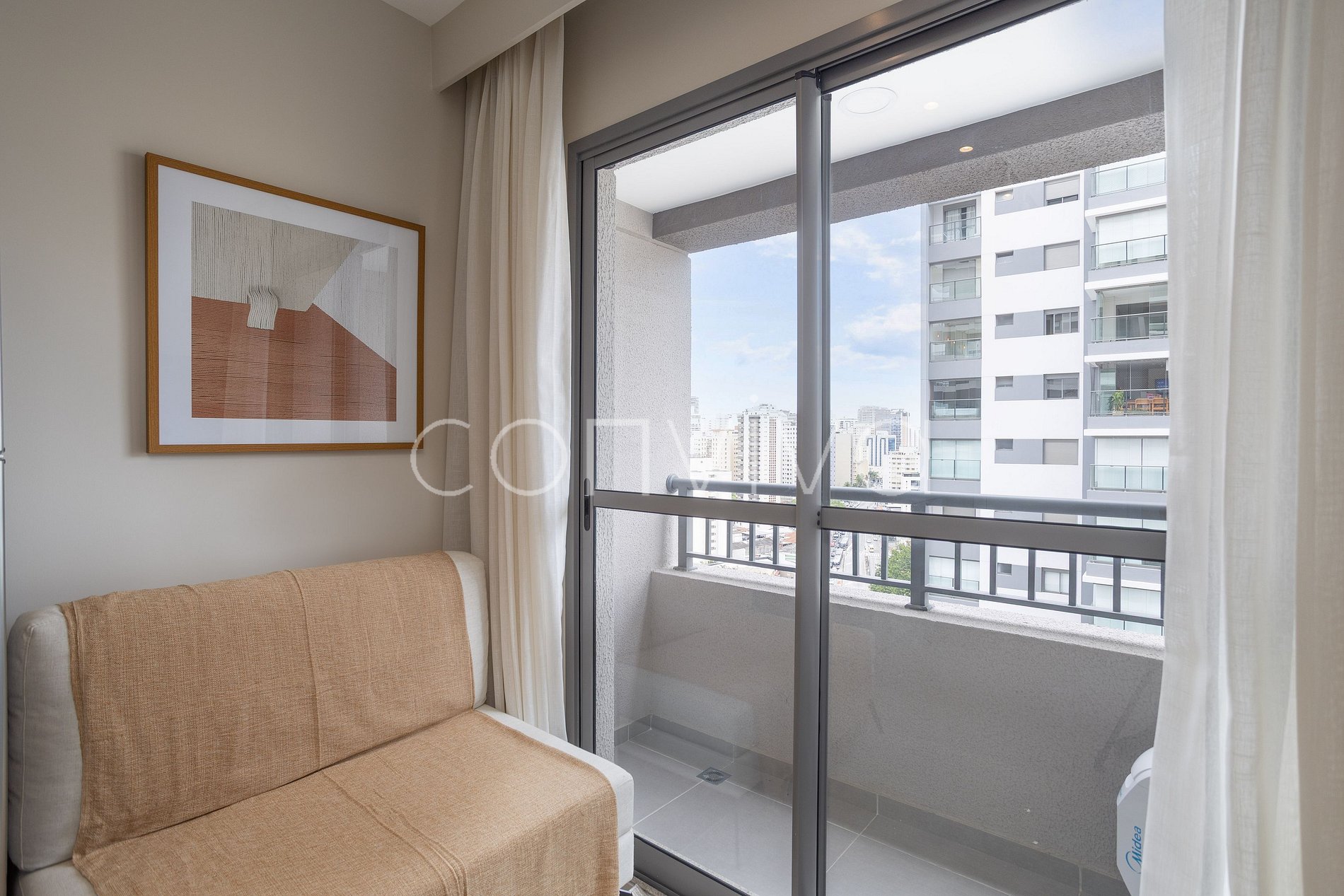 Localizado na melhor região da Vila Nova Conceição, São Paulo. Este moderno apartamento de 26 m² no 15º andar conta com uma cama de casal, banheiro privativo e cozinha compacta totalmente equipada com fogão, micro-ondas, geladeira, além de ar condicionado, Smart TV e área de estar confortável.