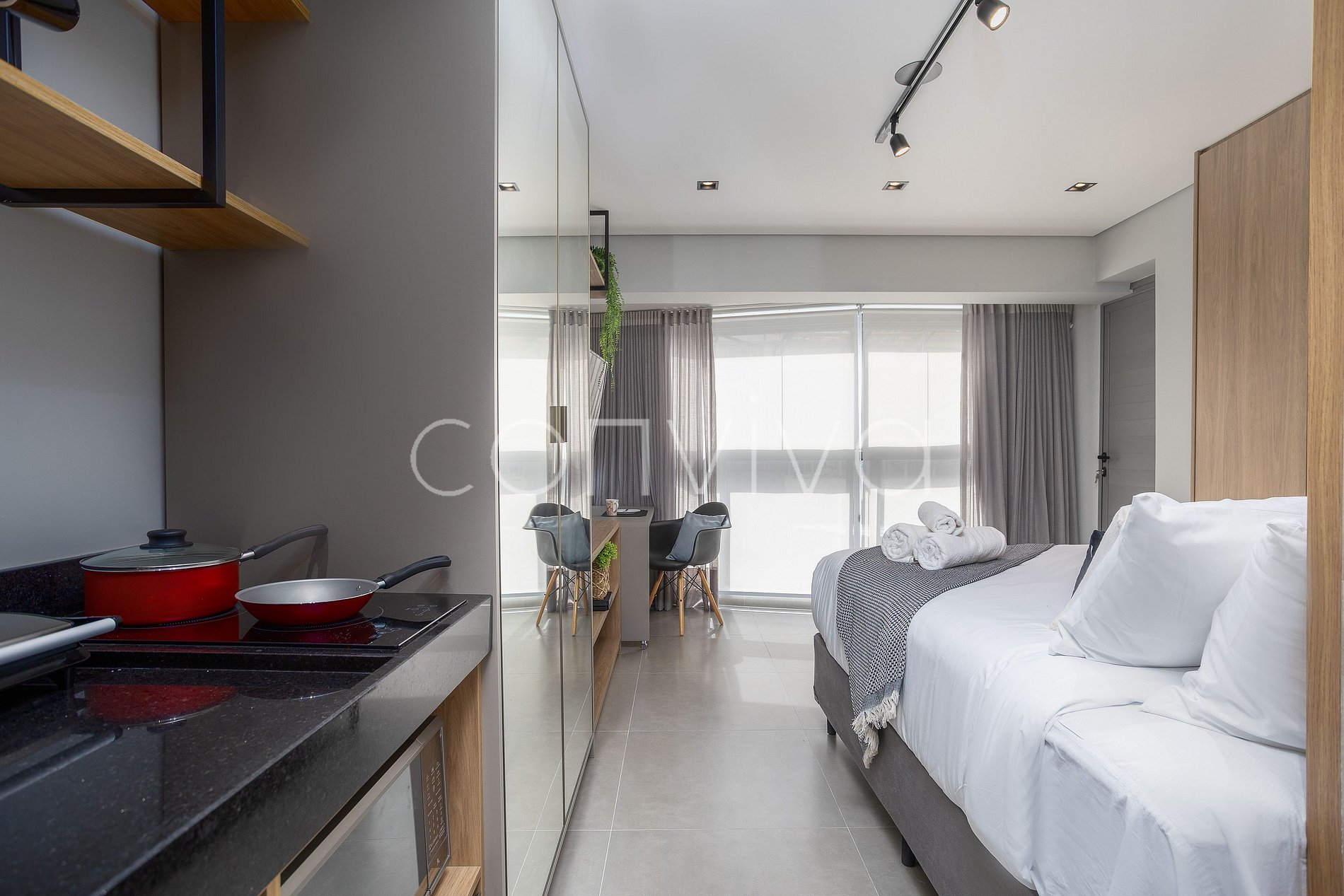Un espacio de 38m², en el 4º piso, con cama tamaño queen, cuarto de baño, amplio balcón y cocina totalmente equipada.