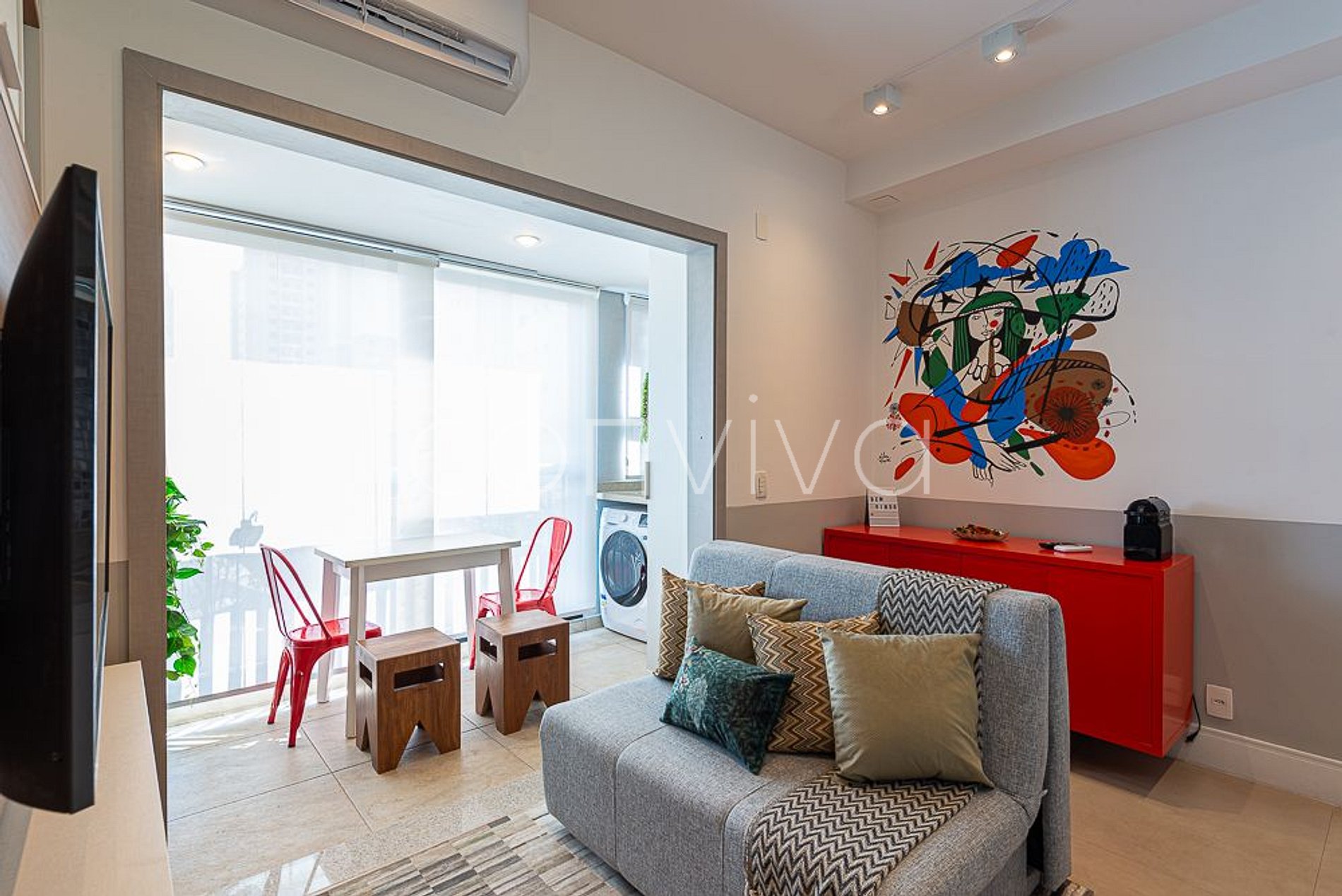Un espacio de 31m², en la 7ª planta, compuesto por cama de matrimonio, cocina, cuarto de baño con ducha tonificante, sofá cama y TV inteligente giratoria para el dormitorio.