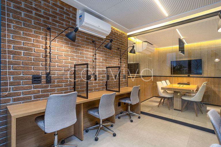 Step Up Paraíso está situado en una de las zonas mejor localizadas de São Paulo, cerca de la Avenida Paulista. El condominio cuenta con gimnasio, piscina, lavandería, espacio gourmet y lugar de negocios.