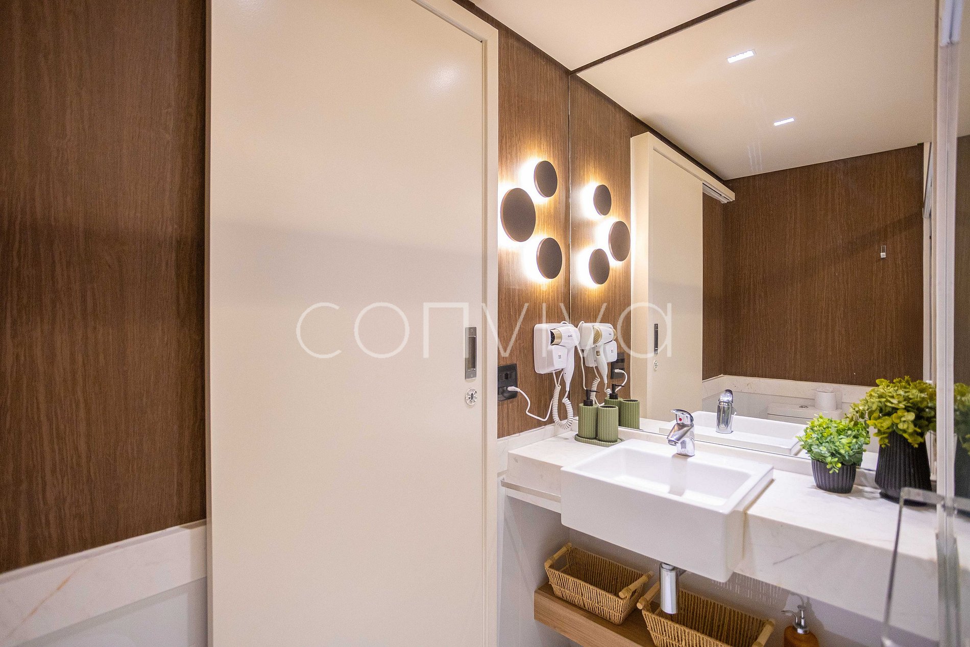 Forma Itaim cuenta con piscina y solárium en la azotea, gimnasio, piscina cubierta con carril, sauna húmeda y seca, spa y lavandería comunitaria.