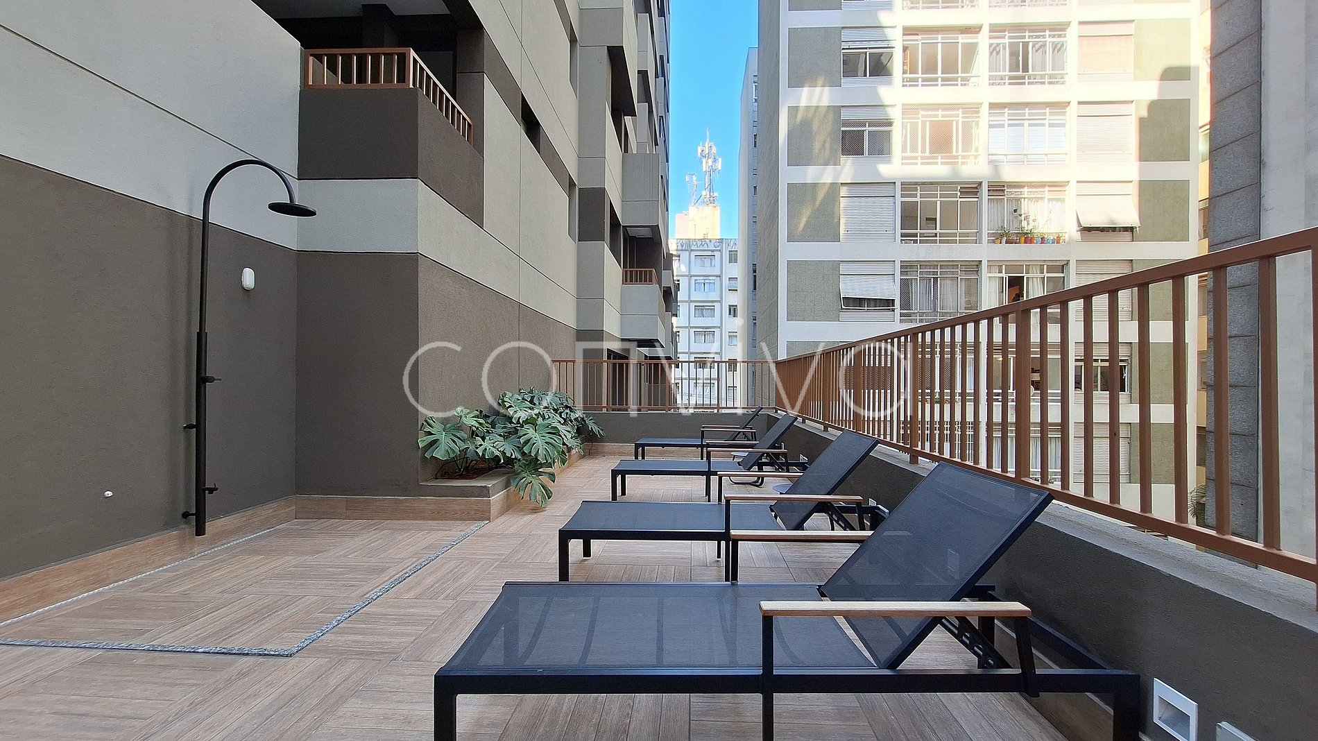 Con 21m², en el 10º piso, tiene cama de matrimonio, sofá, baño y cocina equipada.