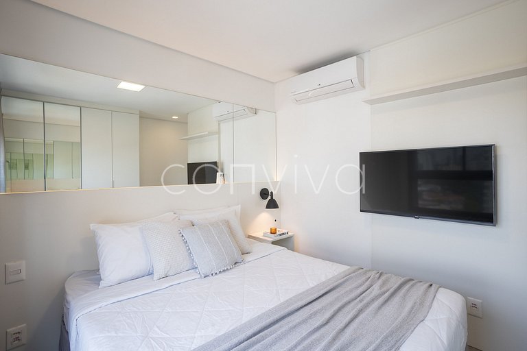 Con 57m², en el 2º piso, el piso dispone de dos habitaciones, una con cama de matrimonio y otra con cama individual y espacio para home office, cocina equipada, baño, sofá y balcón con vistas al barrio.