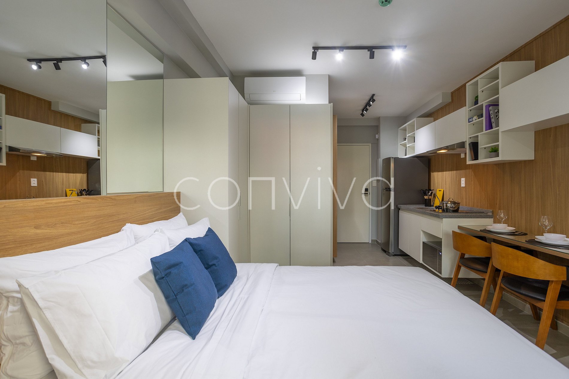 Con 25 m², en el 1er piso, tiene una cama doble, baño, cocina equipada y balcón.