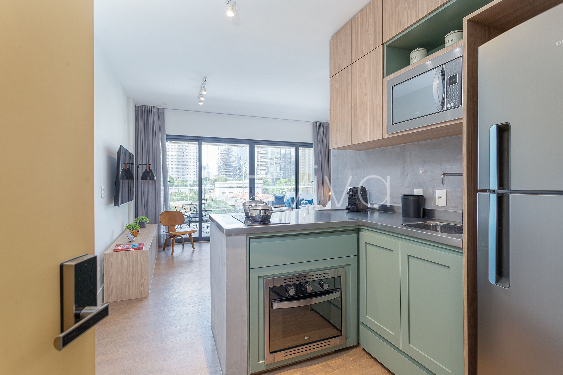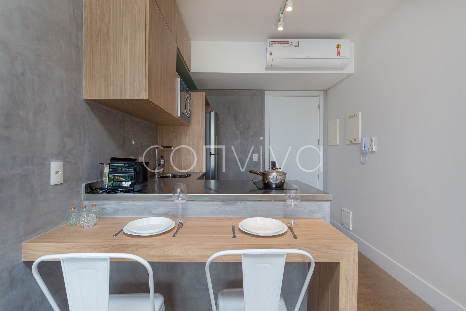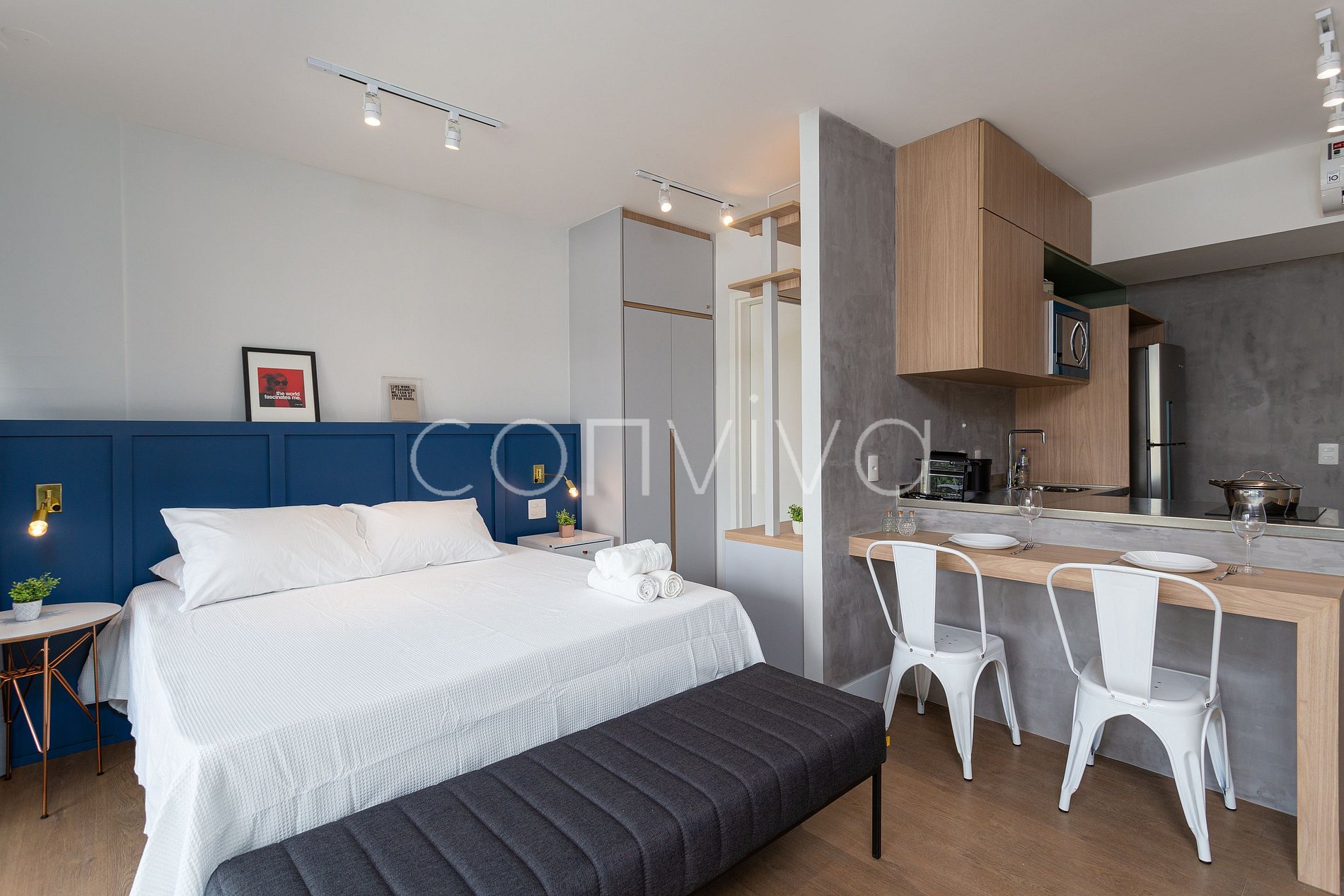 Con 45m², en el 2º piso, una cama queen size, sofá, baño y cocina americana, en la mejor zona de São Paulo.
