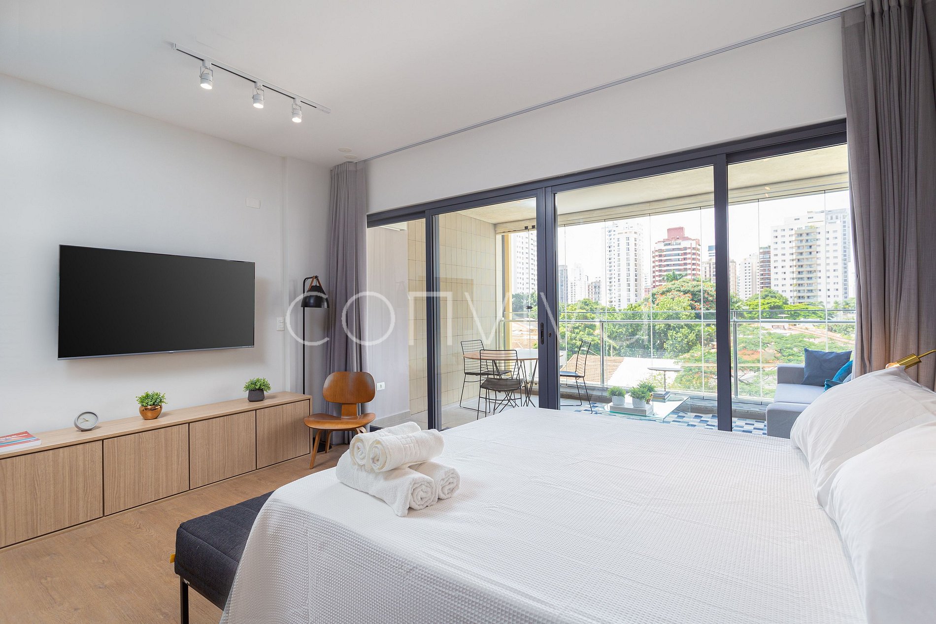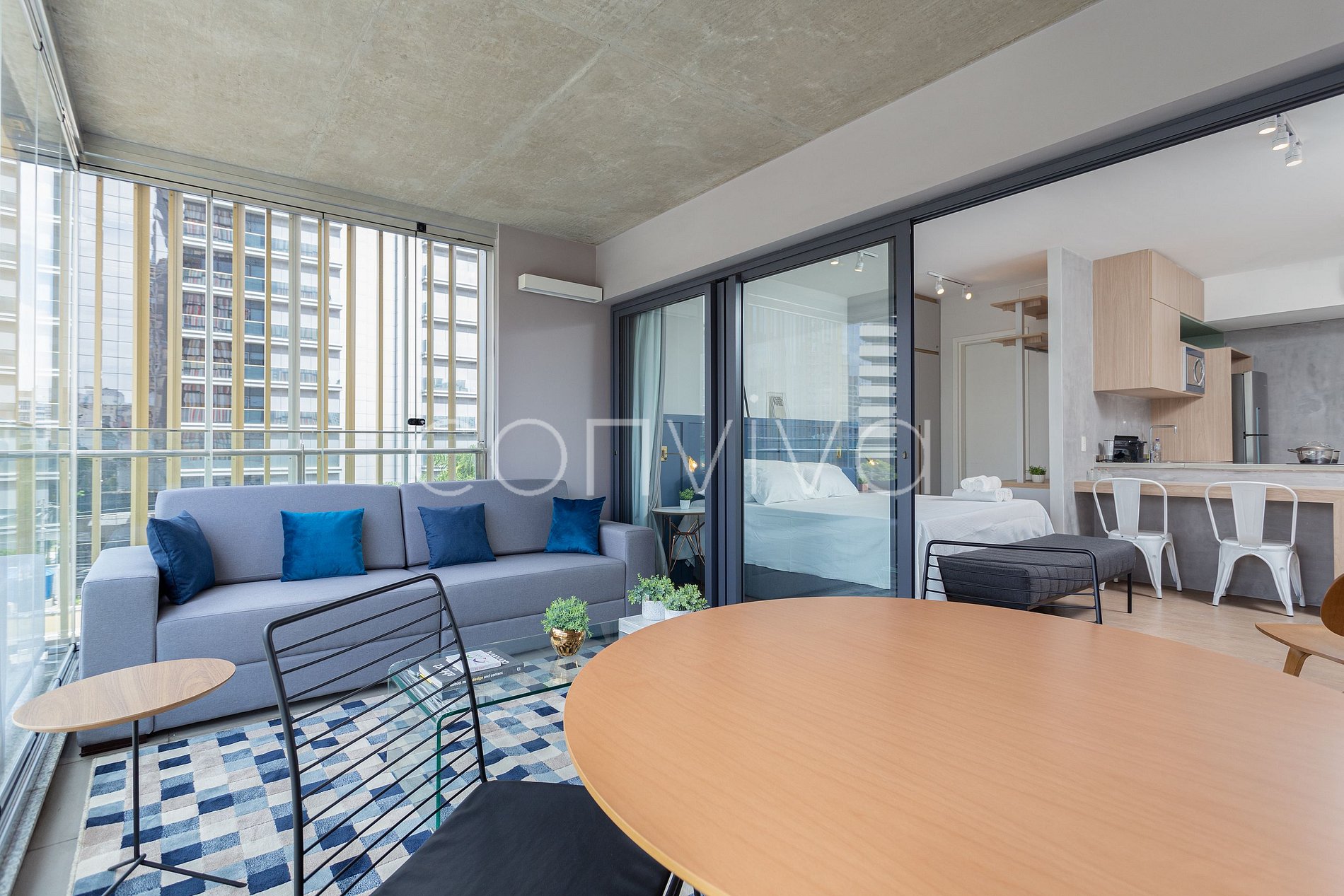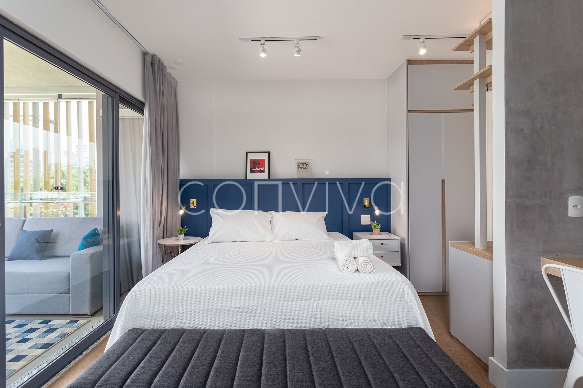 Con 45m², en el 2º piso, una cama queen size, sofá, baño y cocina americana, en la mejor zona de São Paulo.