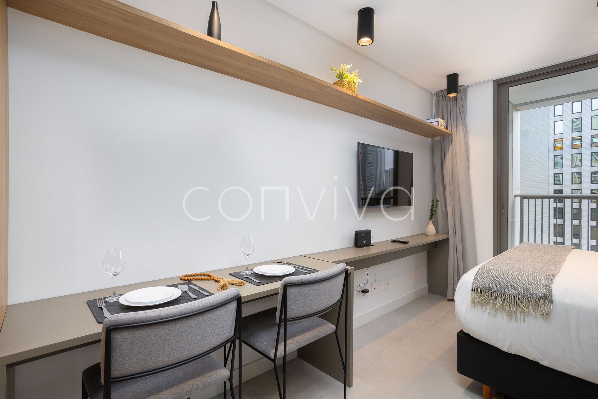 Descubra o conforto e a praticidade do nosso studio mobiliado de 25m² no coração do Tatuapé, São Paulo. Ideal para quem busca aluguel por temporada, seja a trabalho ou lazer, localizado a poucos minutos do metrô Tatuapé, próximo a shoppings, restaurantes e centros comerciais.