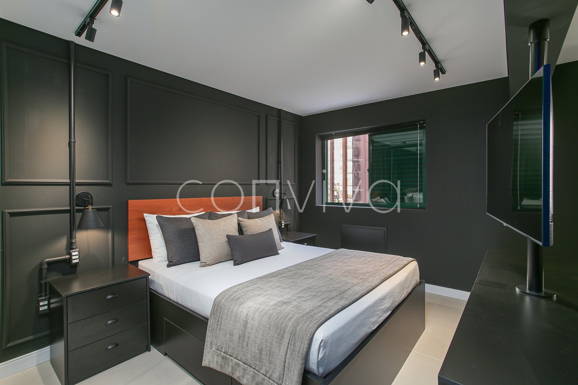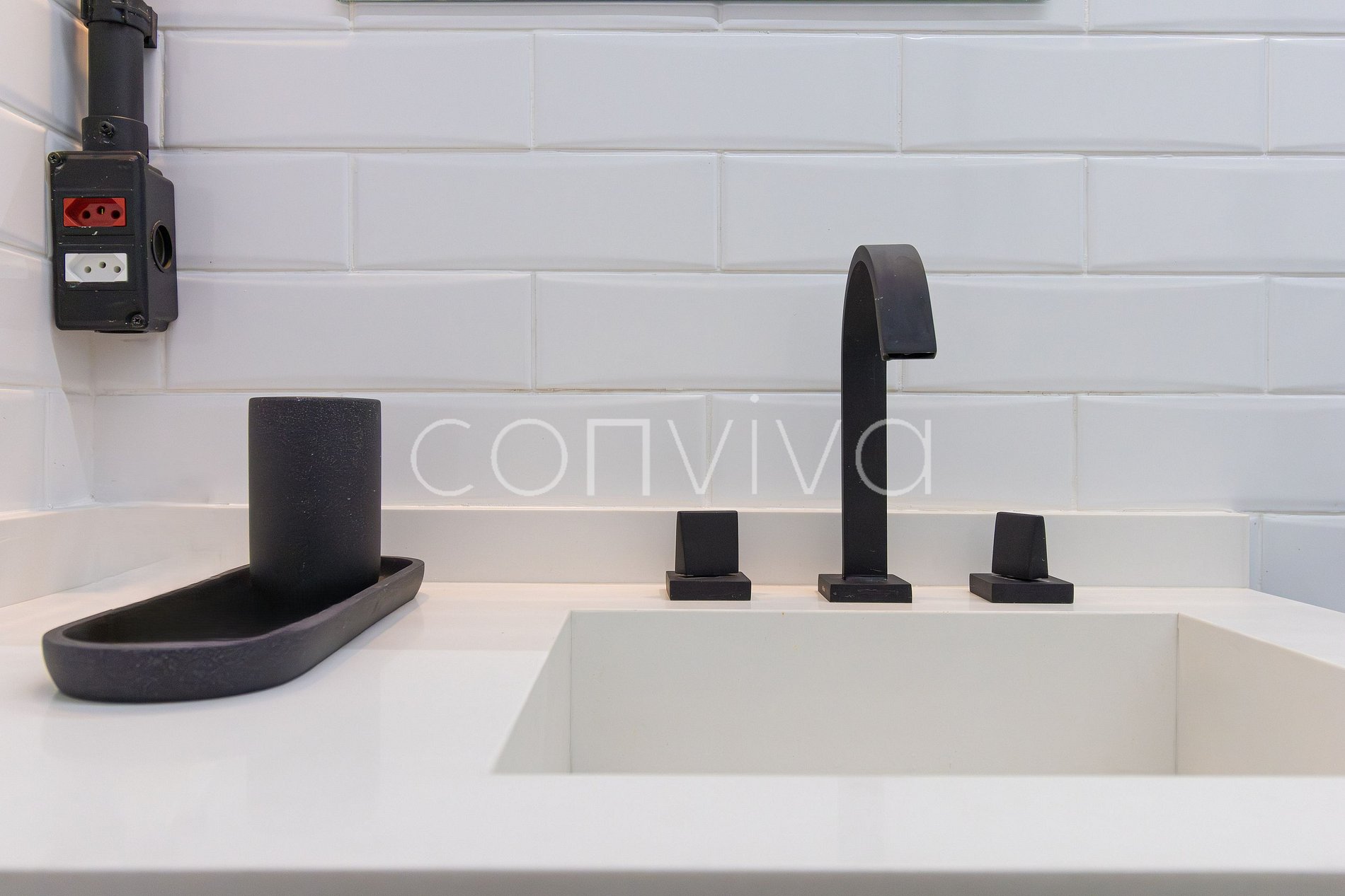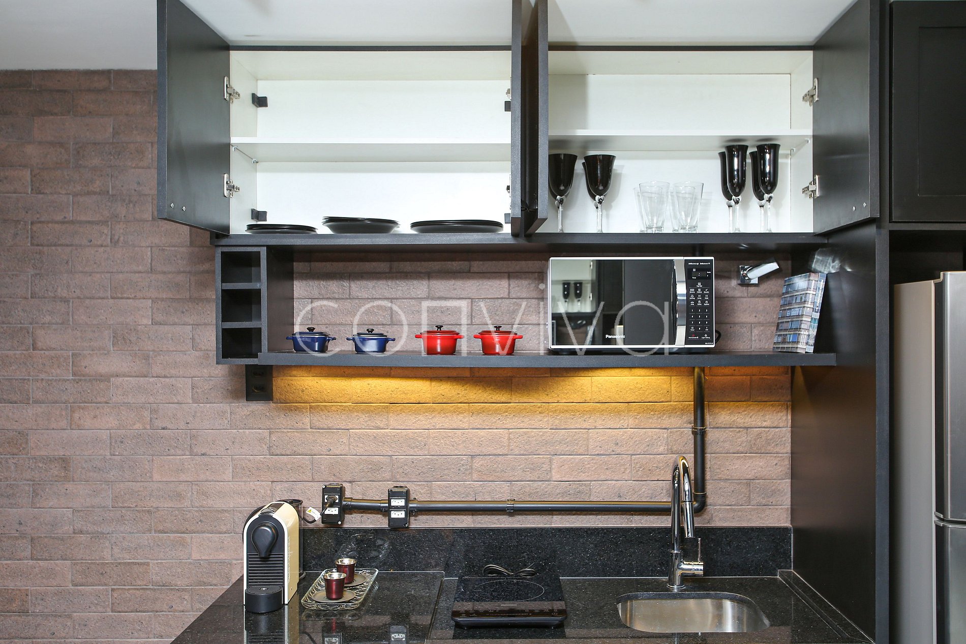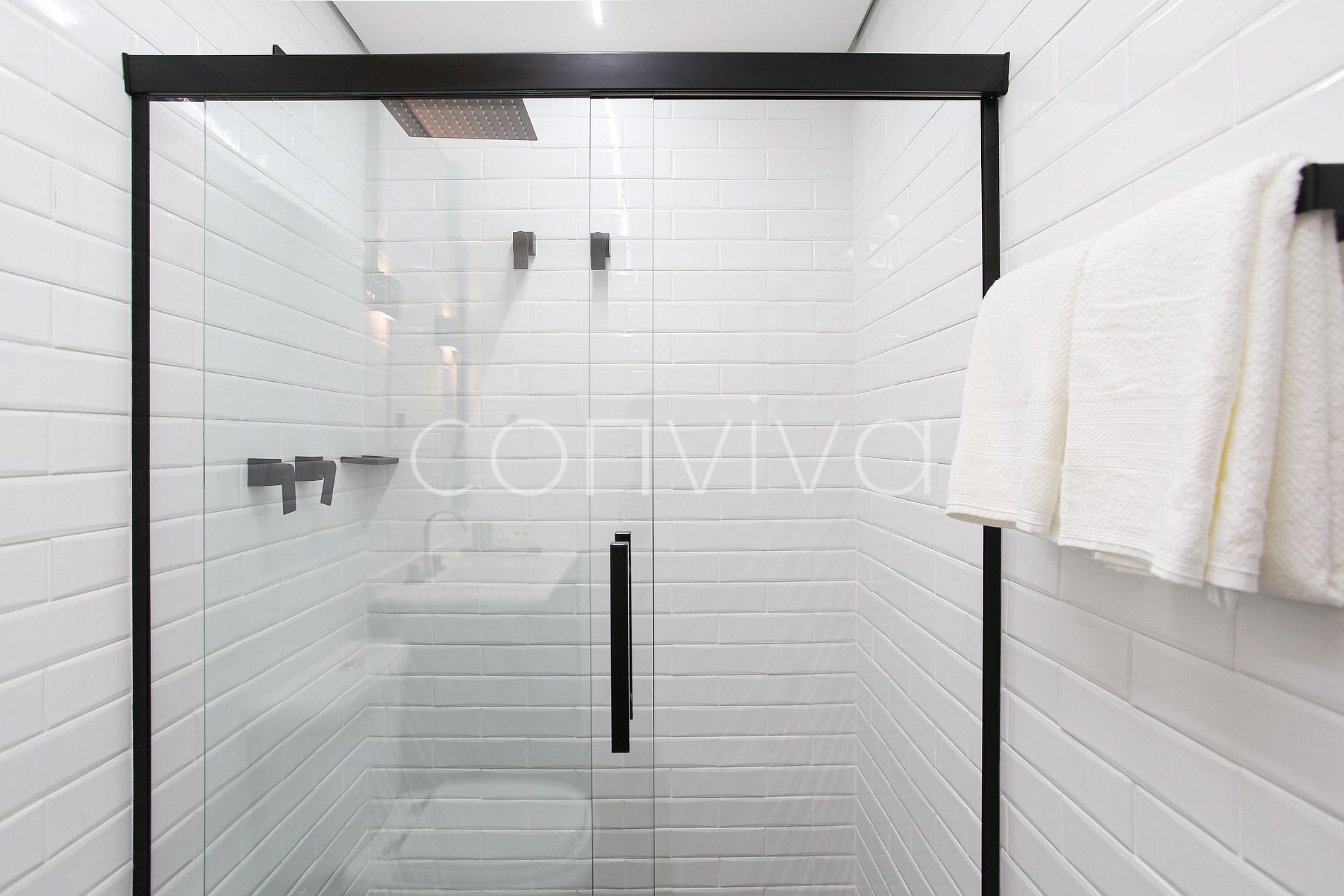 Espacio de 40m², situado en la 3ª planta, con cama de matrimonio, sofá, cuarto de baño y cocina americana con utensilios de primera calidad, cerca de la Avenida Brigadeiro Faria Lima.