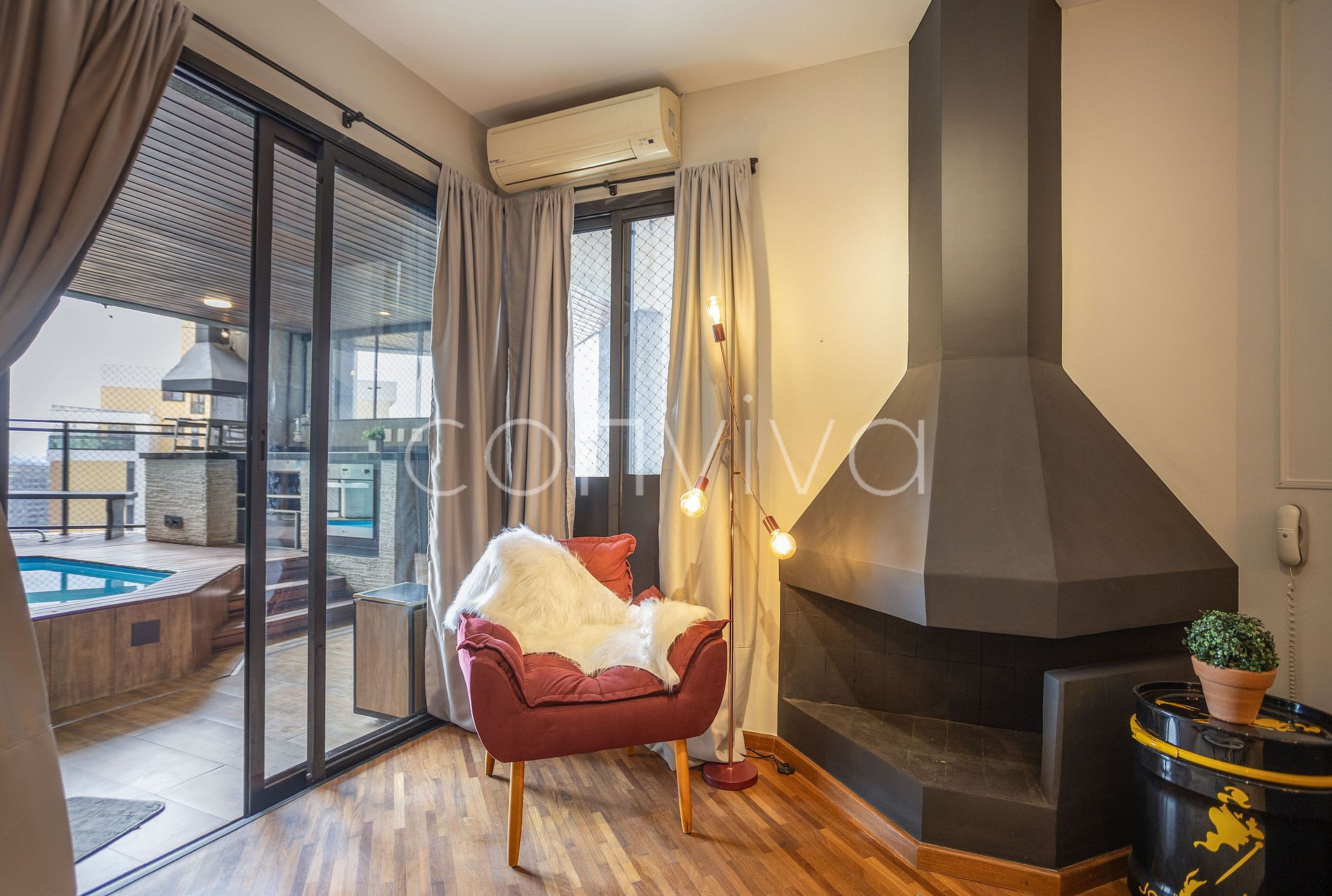 • Ar condicionado na sala e no quarto;