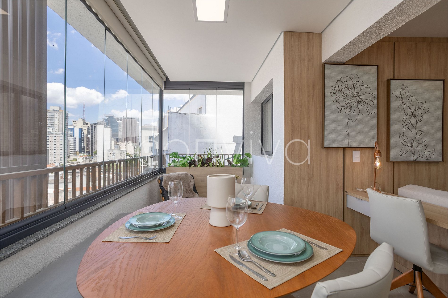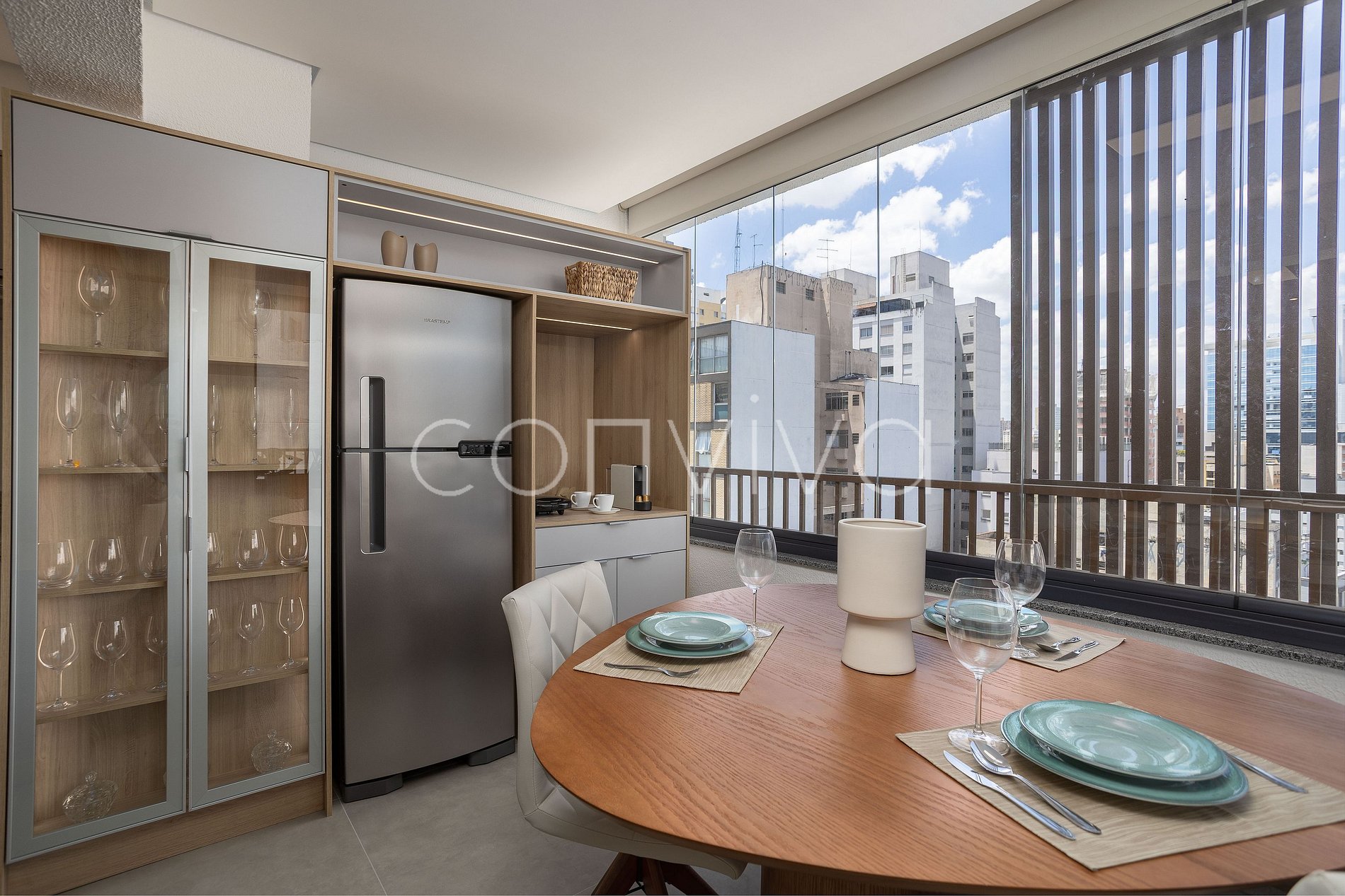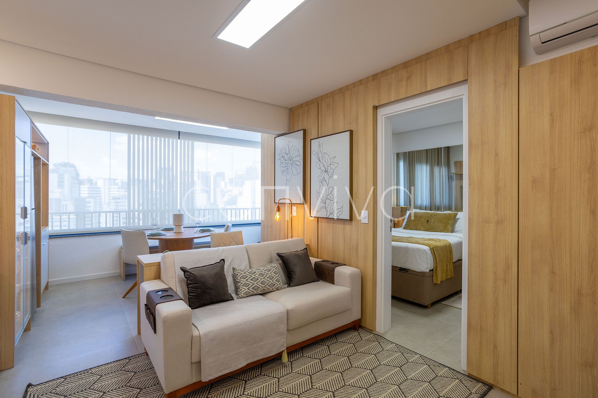 Apartamento de 42m² no 10º andar, com vista livre e panorâmica da cidade de São Paulo. Quarto confortável com cama casal e ar-condicionado, ideal para descanso. Sala generosa com janelas amplas que proporcionam uma vista incrível da cidade. Perfeito para quem busca conforto, tranquilidade e uma localização privilegiada na Consolação, próximo à Avenida Paulista.