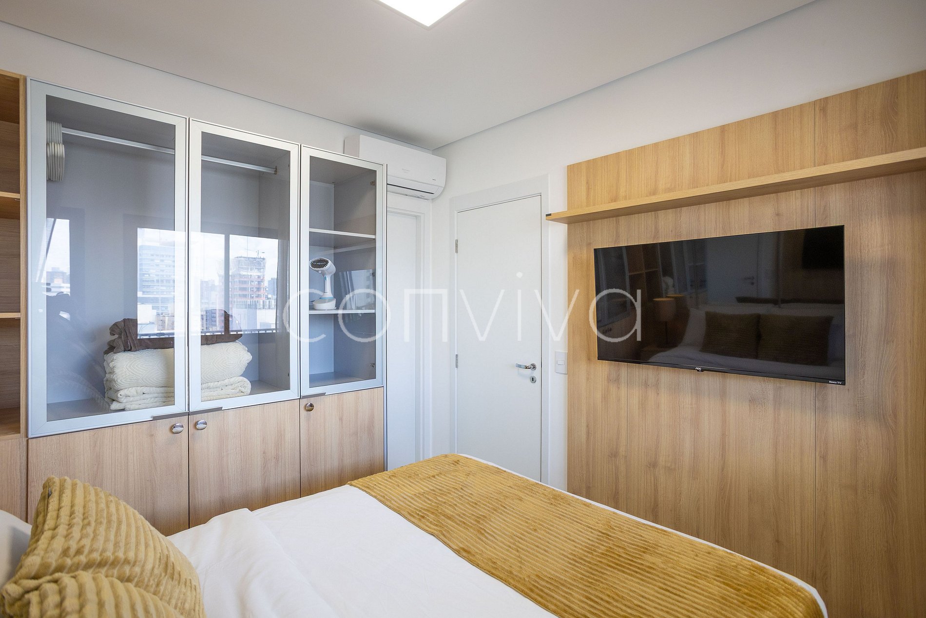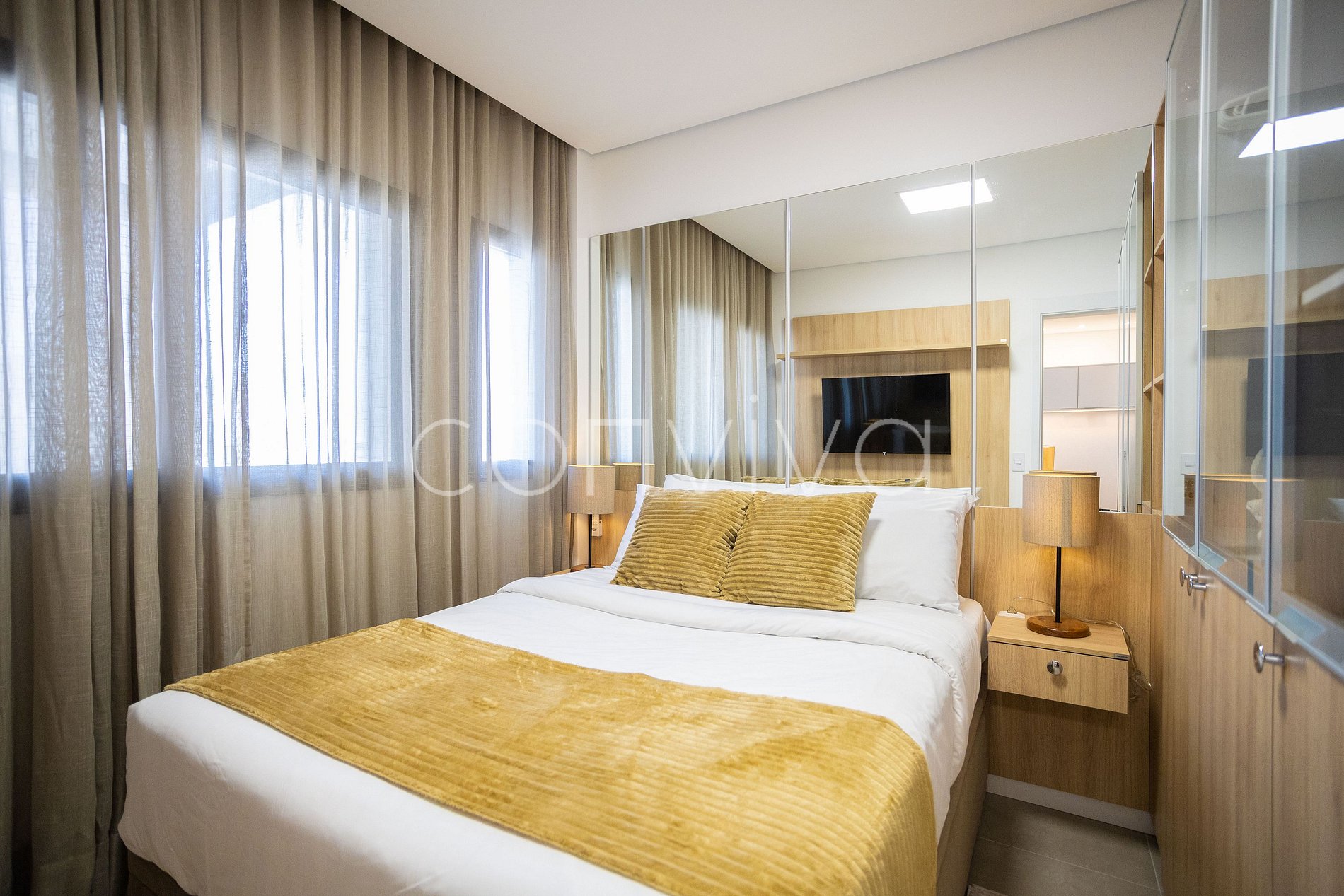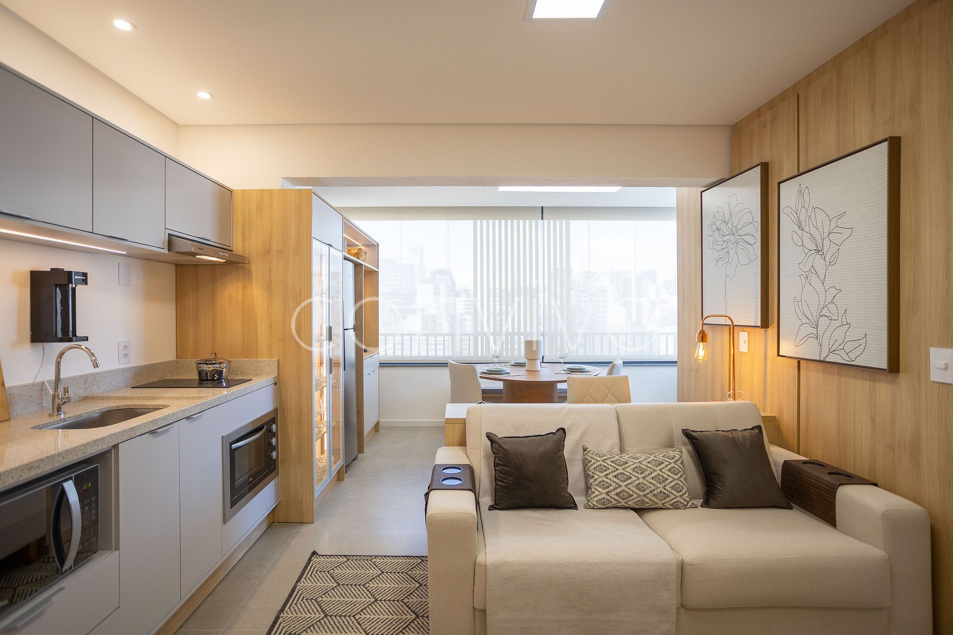 Apartamento de 42m² no 10º andar, com vista livre e panorâmica da cidade de São Paulo. Quarto confortável com cama casal e ar-condicionado, ideal para descanso. Sala generosa com janelas amplas que proporcionam uma vista incrível da cidade. Perfeito para quem busca conforto, tranquilidade e uma localização privilegiada na Consolação, próximo à Avenida Paulista.