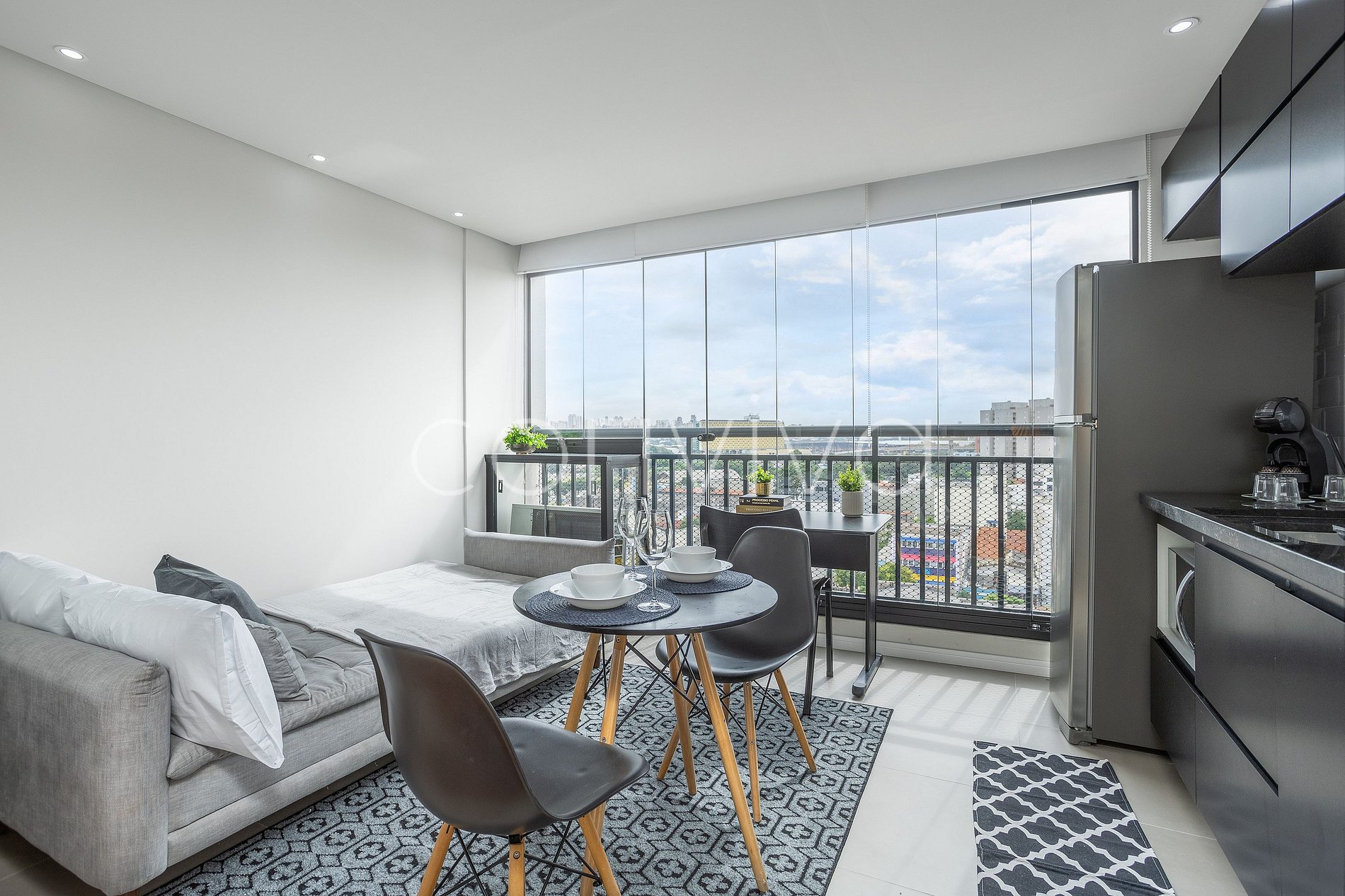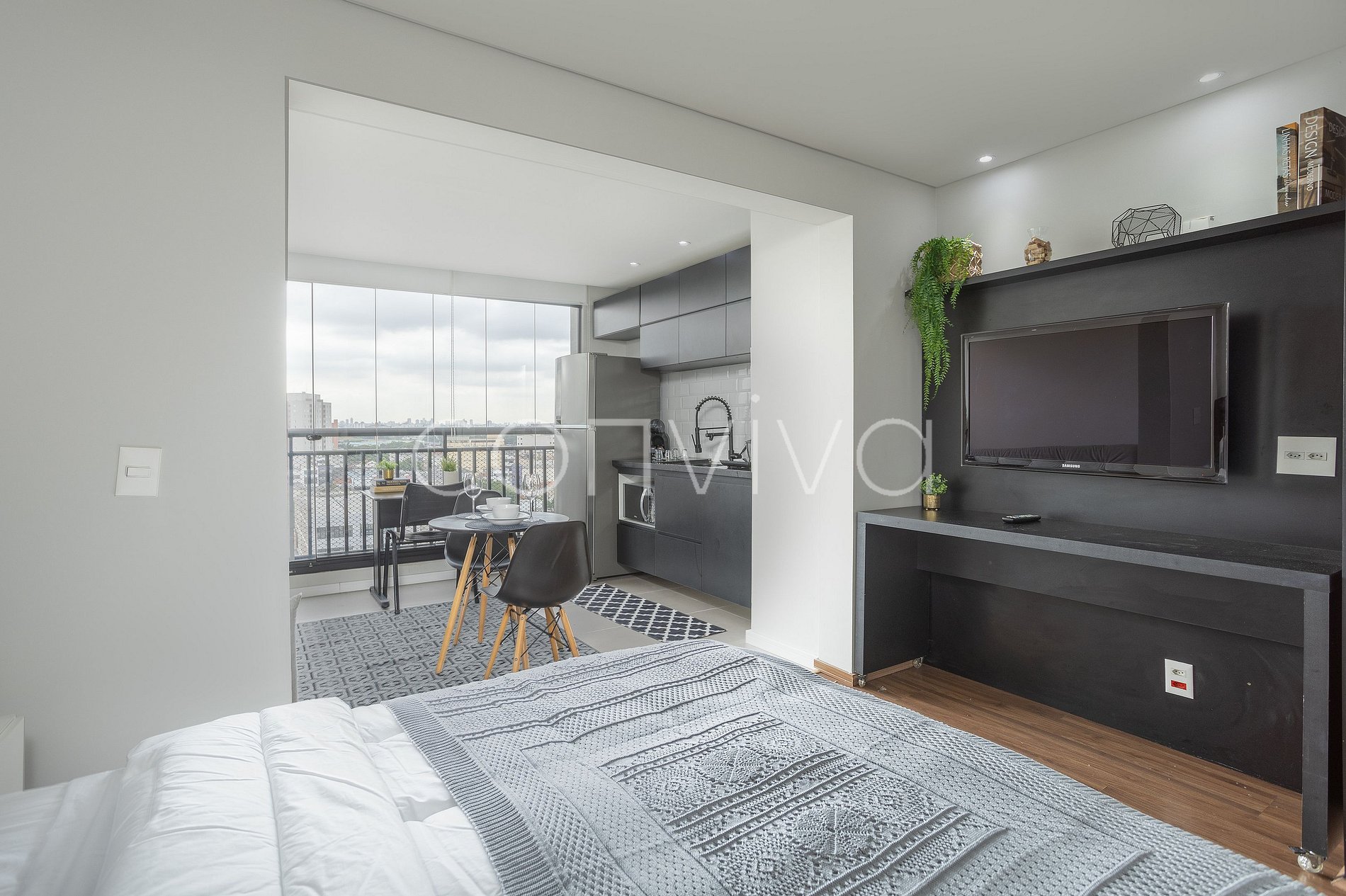 VNBR1107 30m², varanda e home office p/ 4 hóspedes