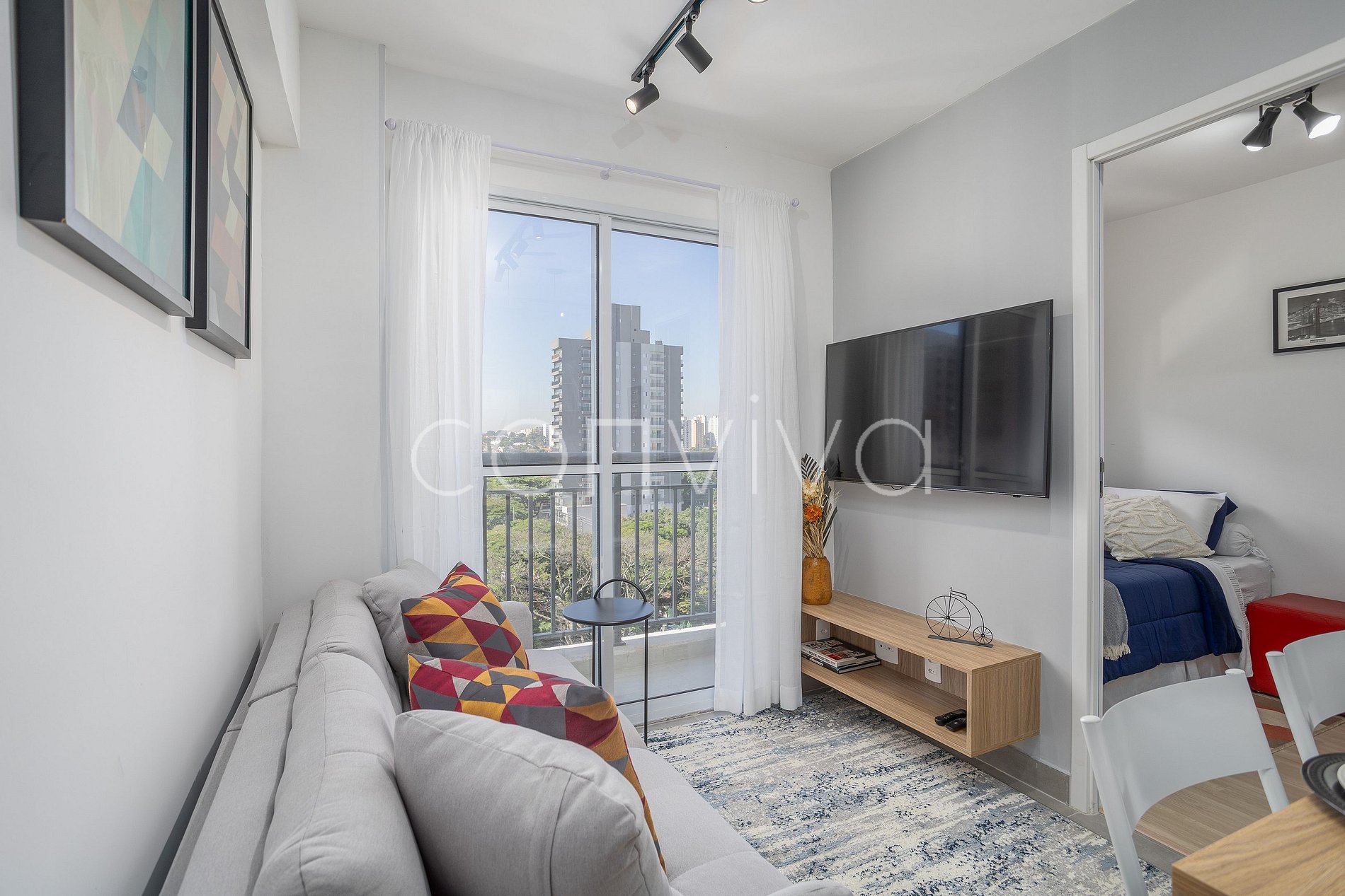 Localizado no charmoso bairro de Moema, este moderno apartamento de 36m² no 7º andar oferece o máximo de conforto e praticidade para a sua estadia em São Paulo, ideal para quem busca uma experiência única, seja a lazer ou a negócios.