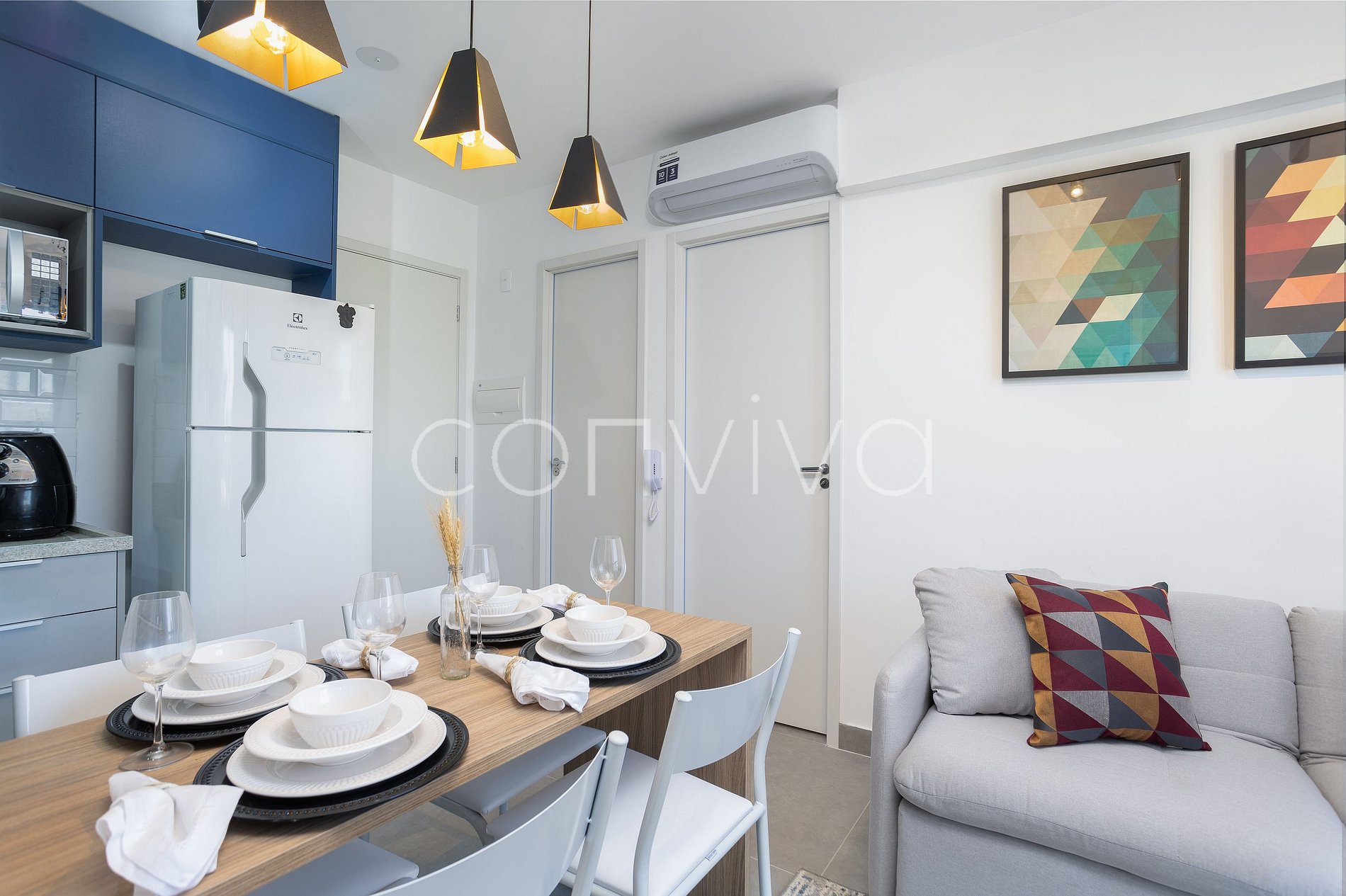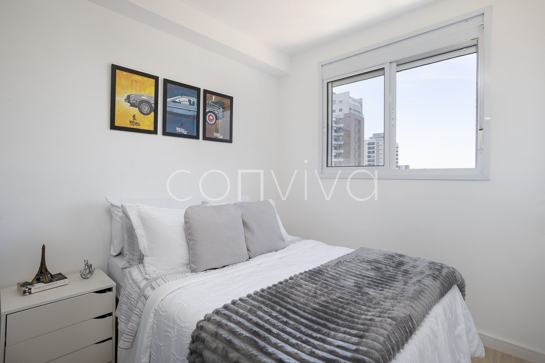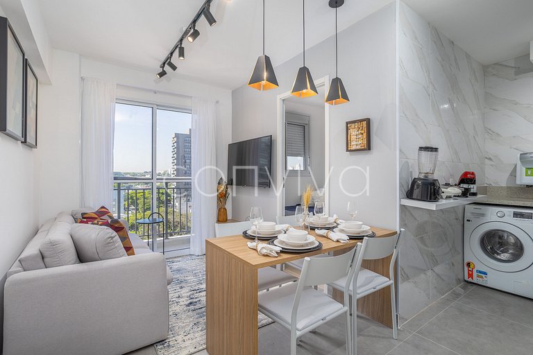 Localizado no charmoso bairro de Moema, este moderno apartamento de 36m² no 7º andar oferece o máximo de conforto e praticidade para a sua estadia em São Paulo, ideal para quem busca uma experiência única, seja a lazer ou a negócios.