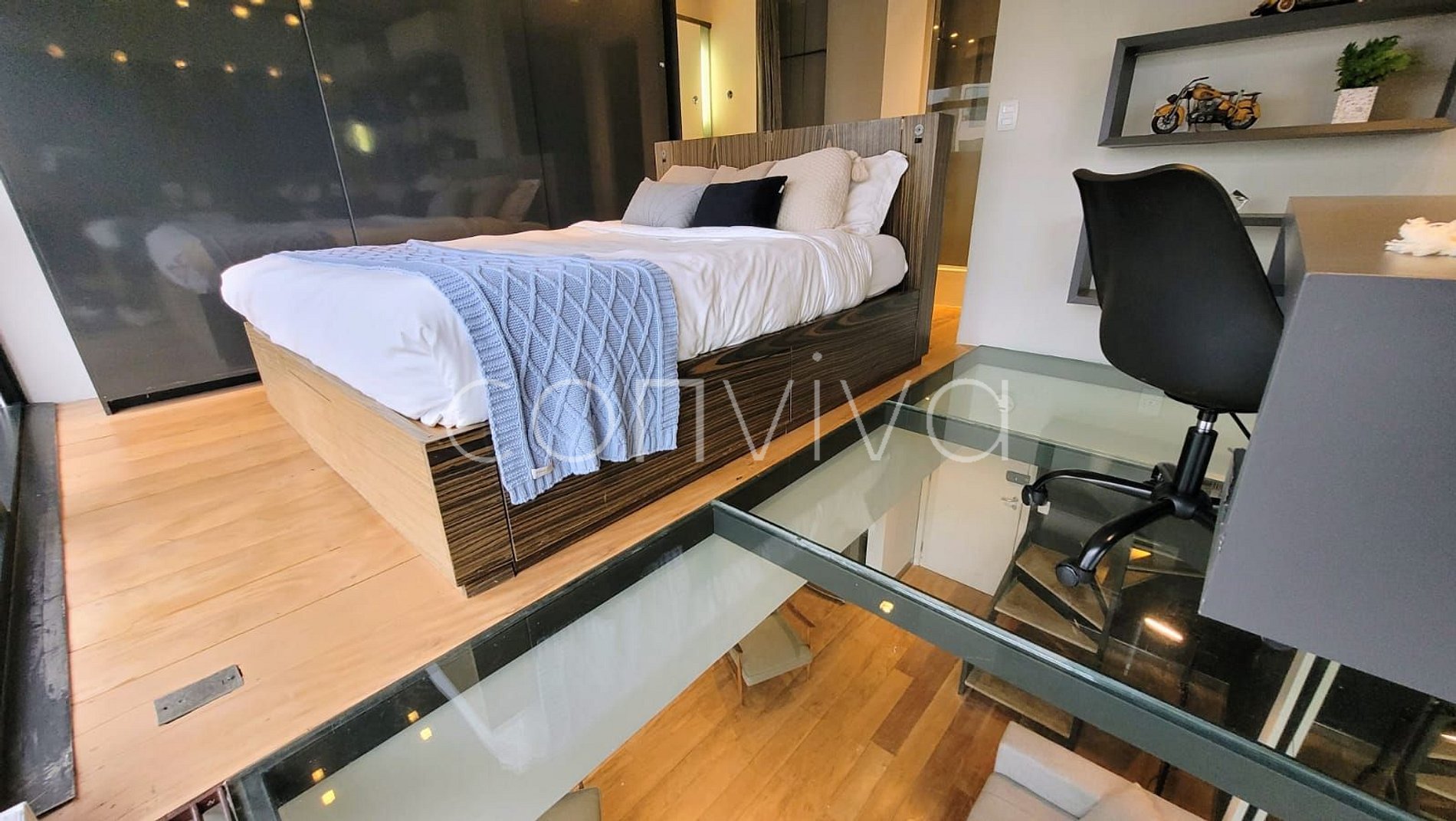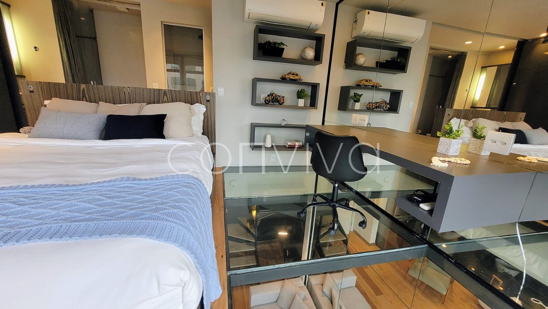 Com 48m², no 14º andar, o duplex dispõe de dois andares, suíte com cama queen e espaço para home office, banheiro espaçoso, sala ampla com sofá, cozinha completa bem equipada, com limpeza básica inclusa de segunda a sexta.