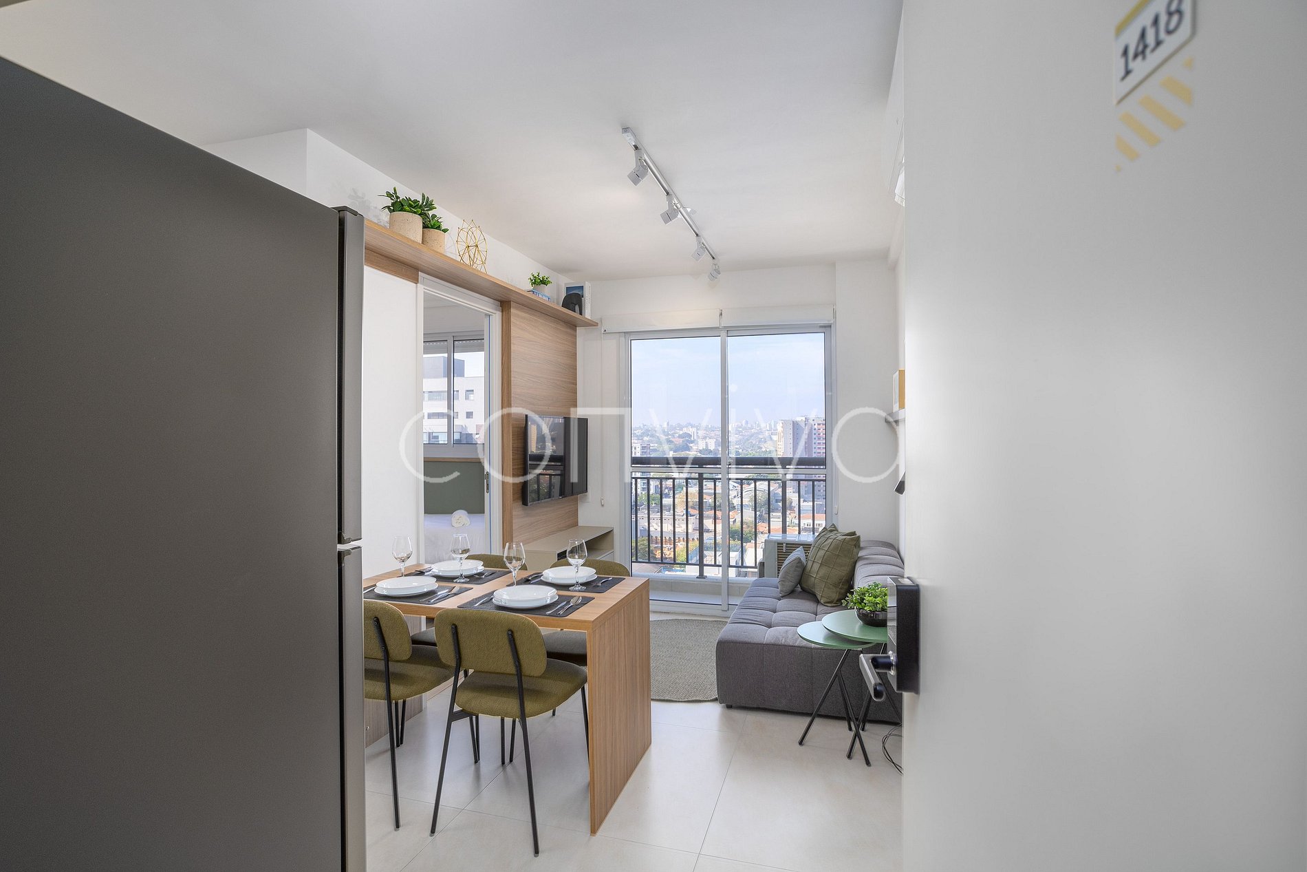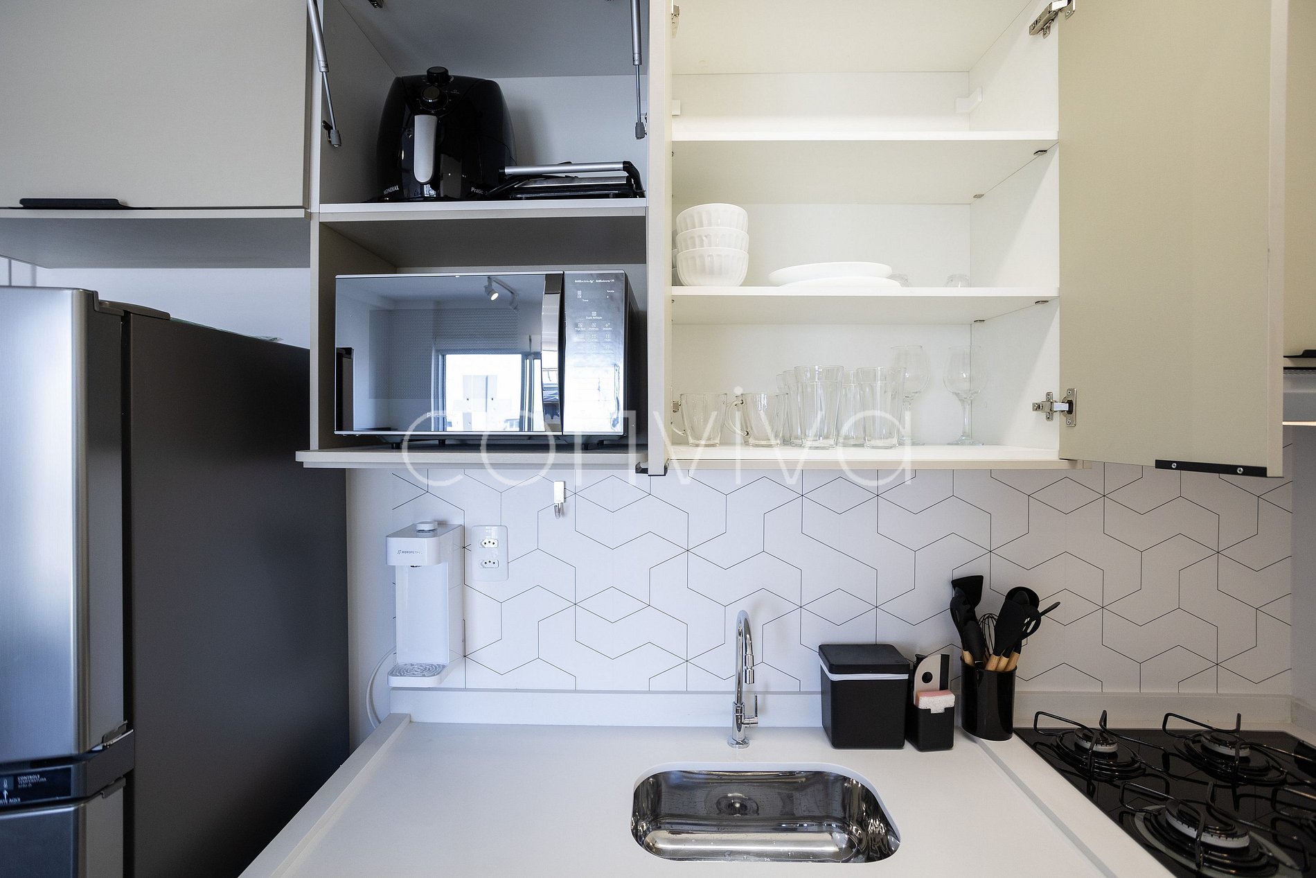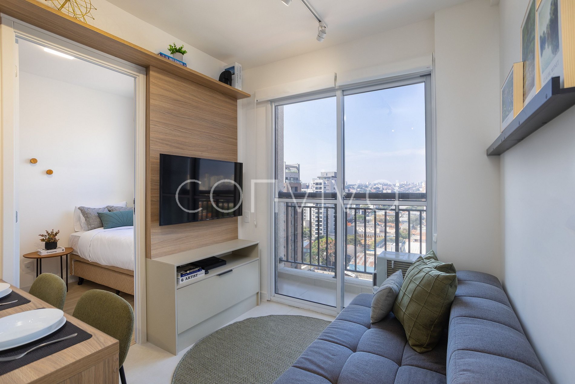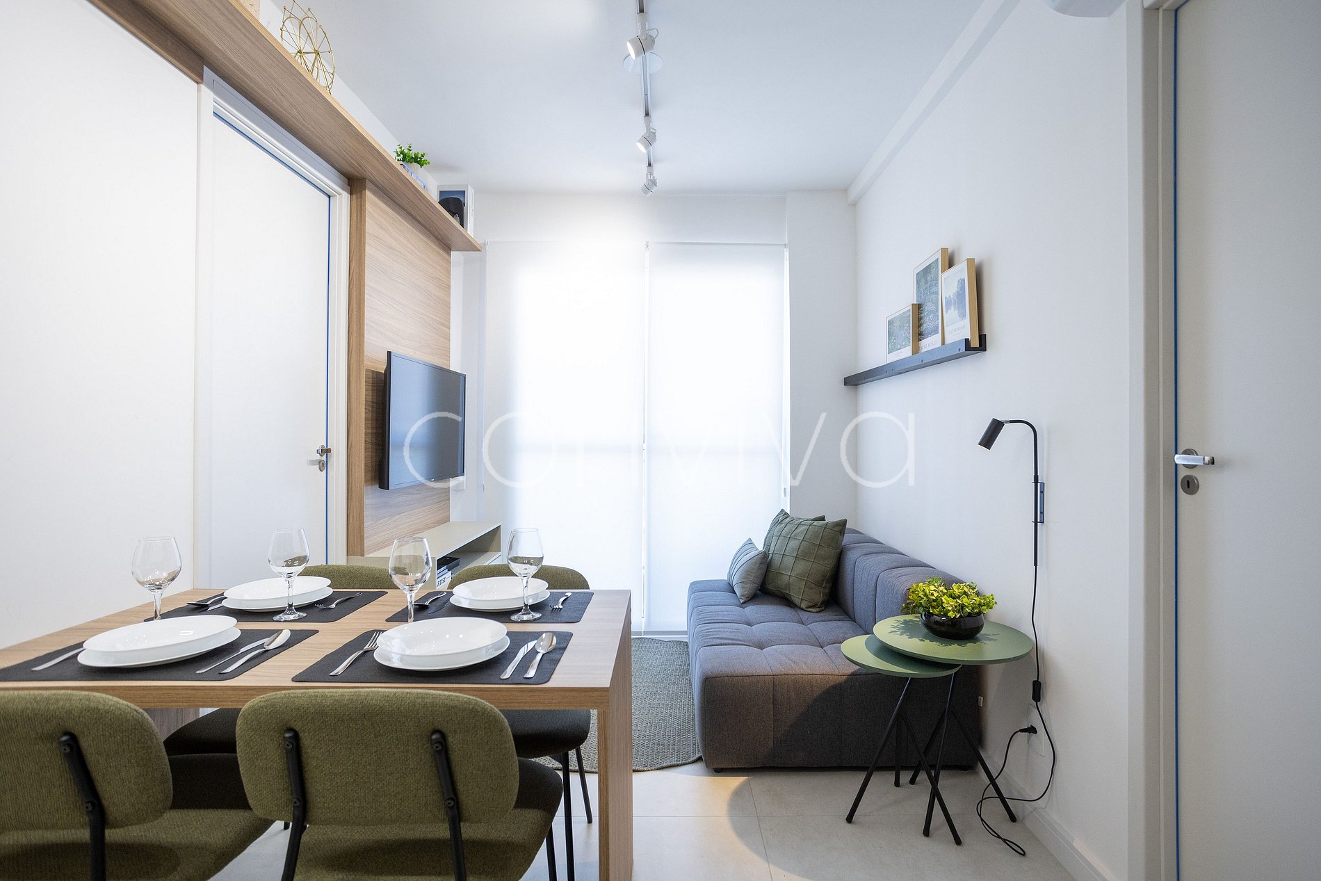 Localizado no encantador bairro de Moema, este moderno apartamento de 36m², situado no 14º andar, oferece conforto e praticidade excepcionais para sua estadia em São Paulo, sendo ideal tanto para viagens a lazer quanto a negócios, proporcionando uma experiência única.