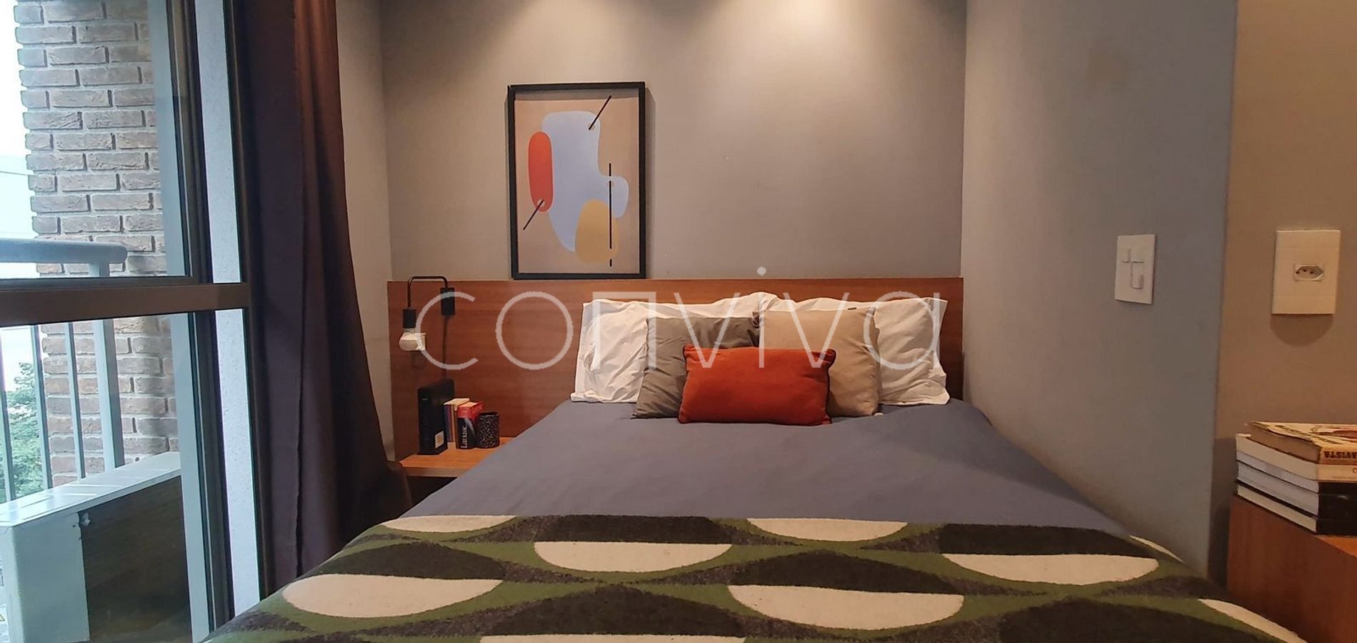 O espaço está localizado no 9º andar e é composto por uma cama de casal, banheiro e cozinha compacta, com os utensílios necessários para o preparo das suas refeições.