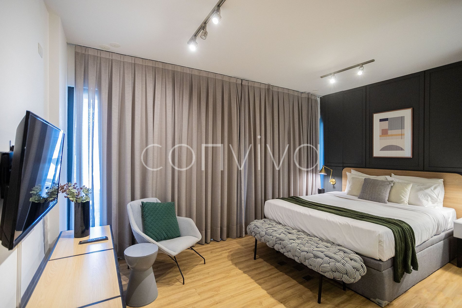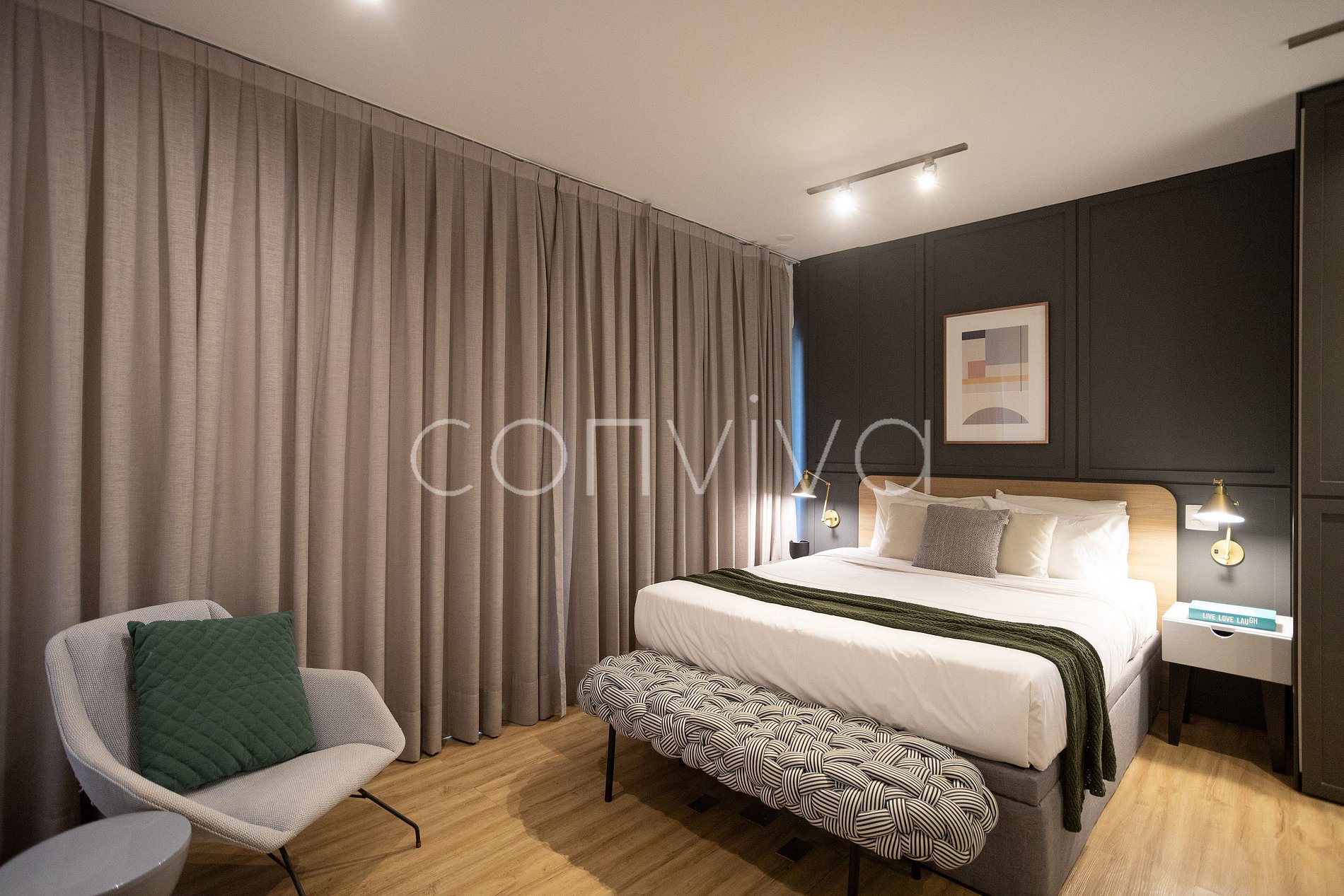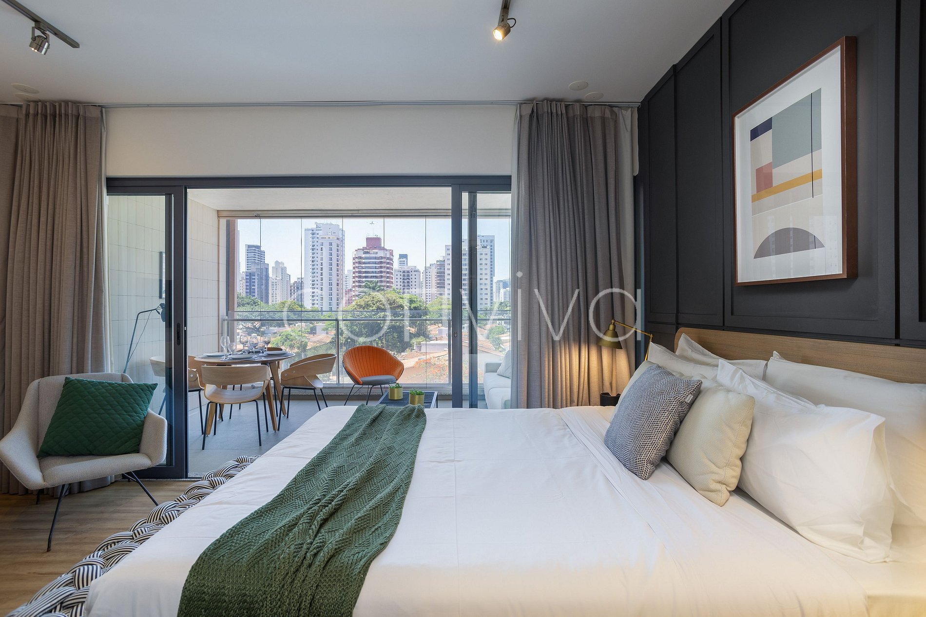 Apartamento no 3º andar do Edifício Forma Itaim, localizado no coração do Itaim Bibi, São Paulo. Com 46m², este apartamento moderno e funcional conta com cama queen size, cozinha equipada (cooktop, forno, cafeteira Nespresso), ar-condicionado e Wi-Fi de alta velocidade.