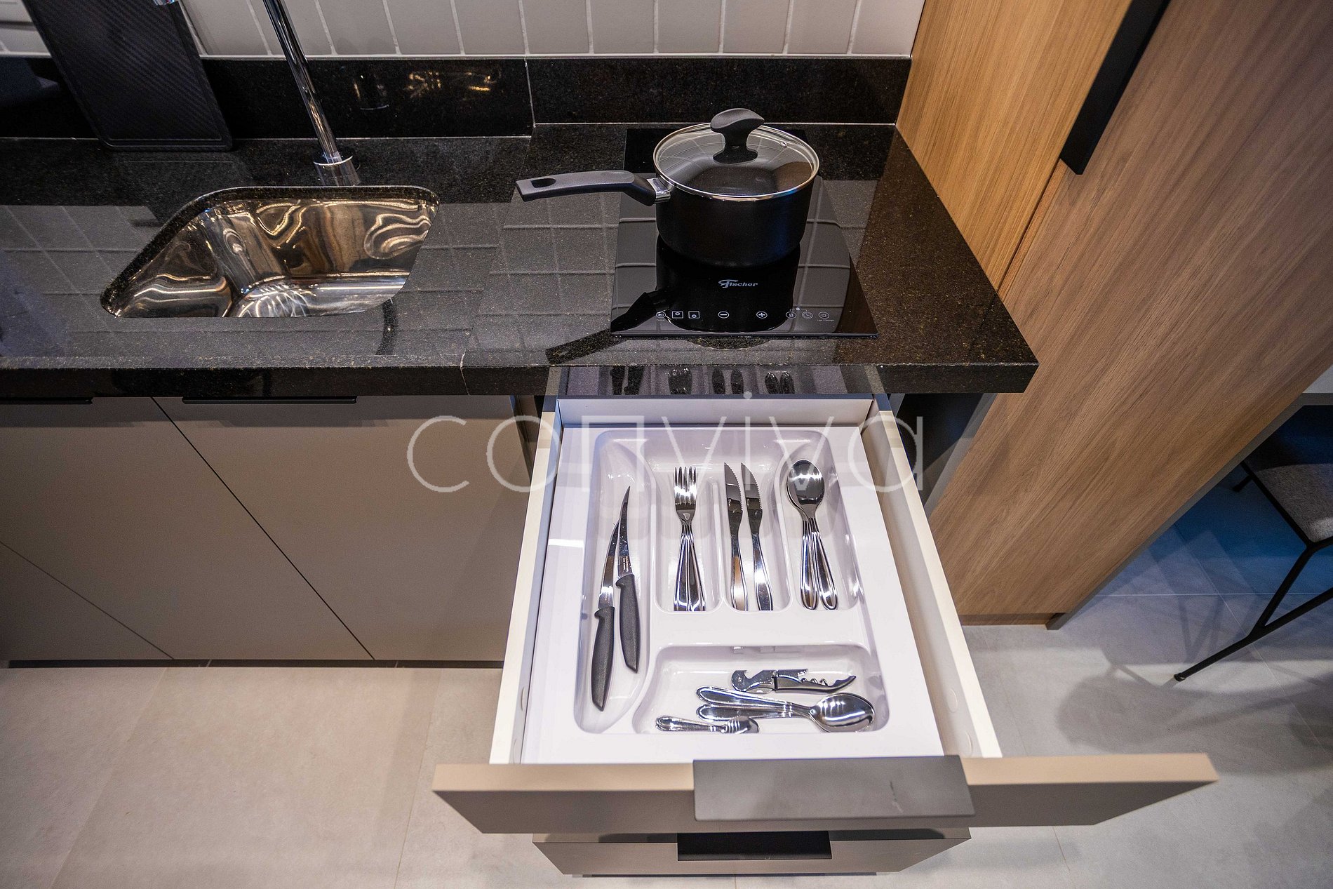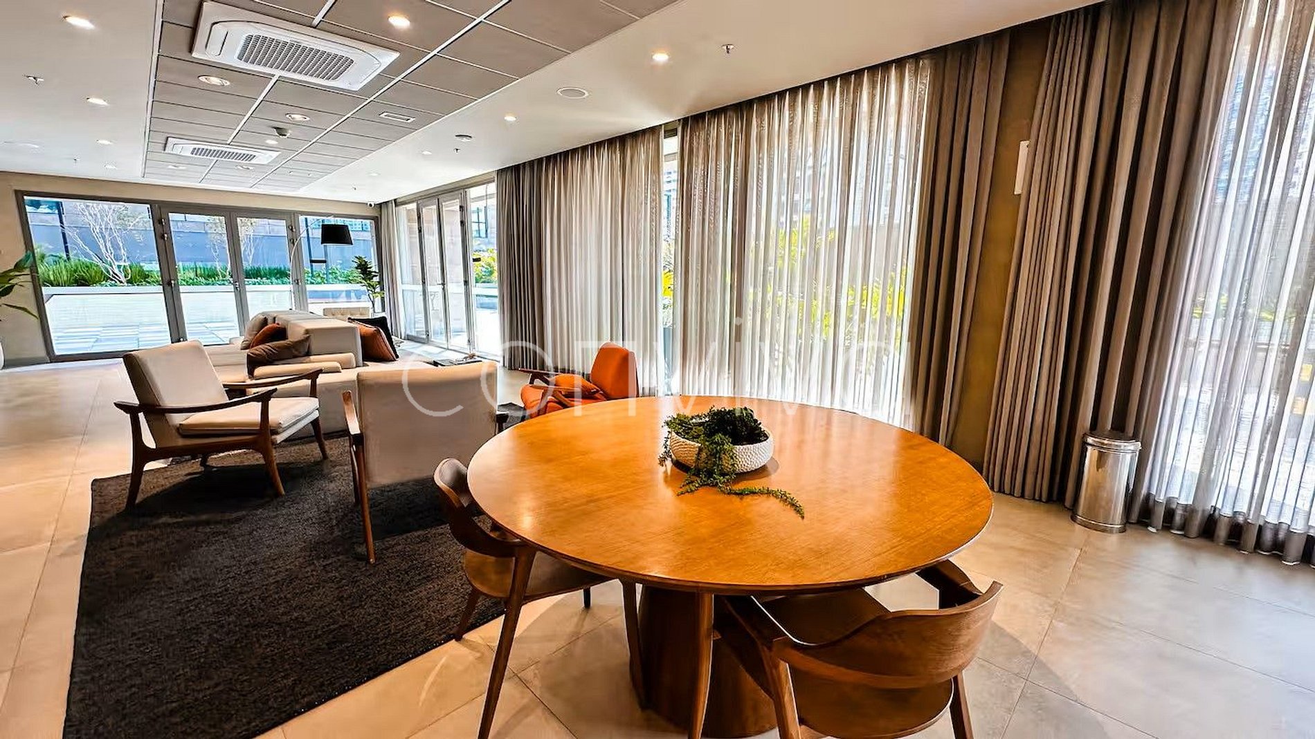 Conta com portaria 24 horas, piscina, academia, espaço de convivência e lavanderia.