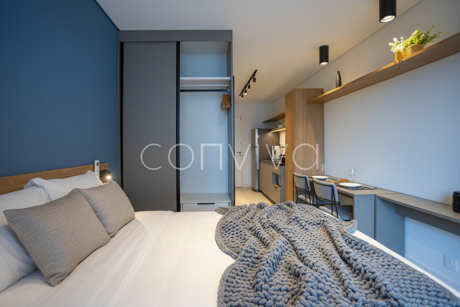 Descubra o conforto e a praticidade do nosso studio mobiliado de 25m² no coração do Tatuapé, São Paulo. Ideal para quem busca aluguel por temporada, seja a trabalho ou lazer, localizado a poucos minutos do metrô Tatuapé, próximo a shoppings, restaurantes e centros comerciais.