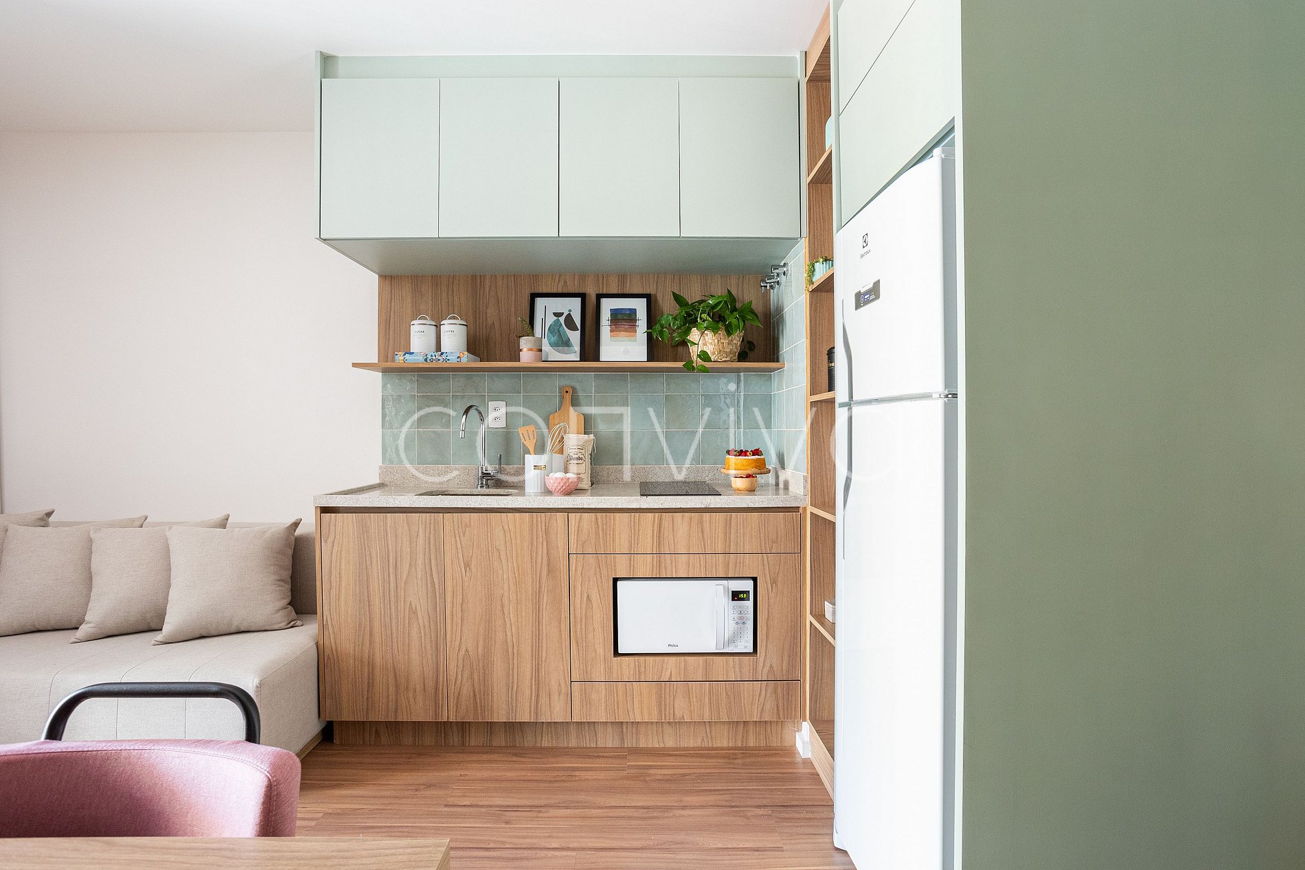 Studio amplo de 49m² no Itaim Bibi, com vaga de garagem, academia, piscina e lavanderia no prédio.