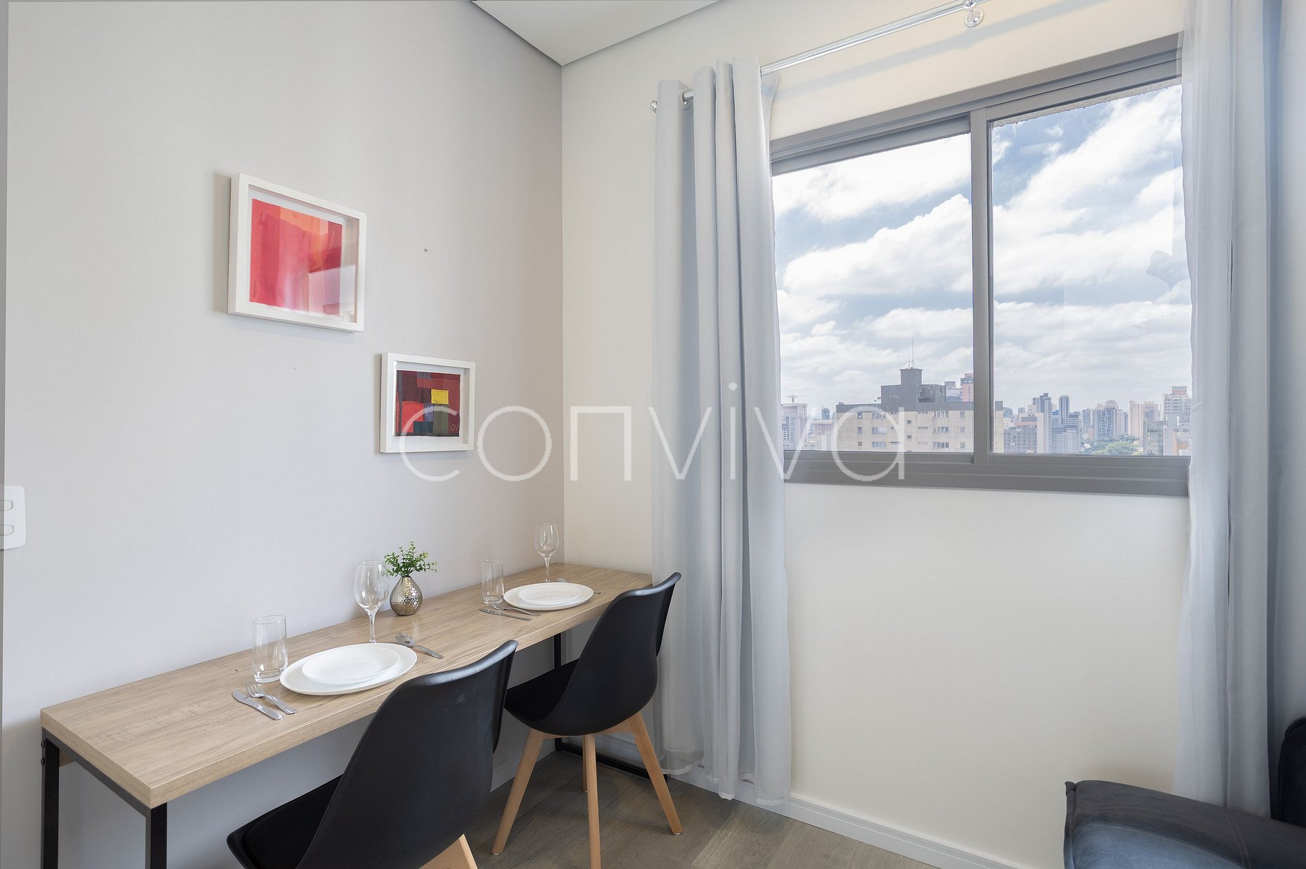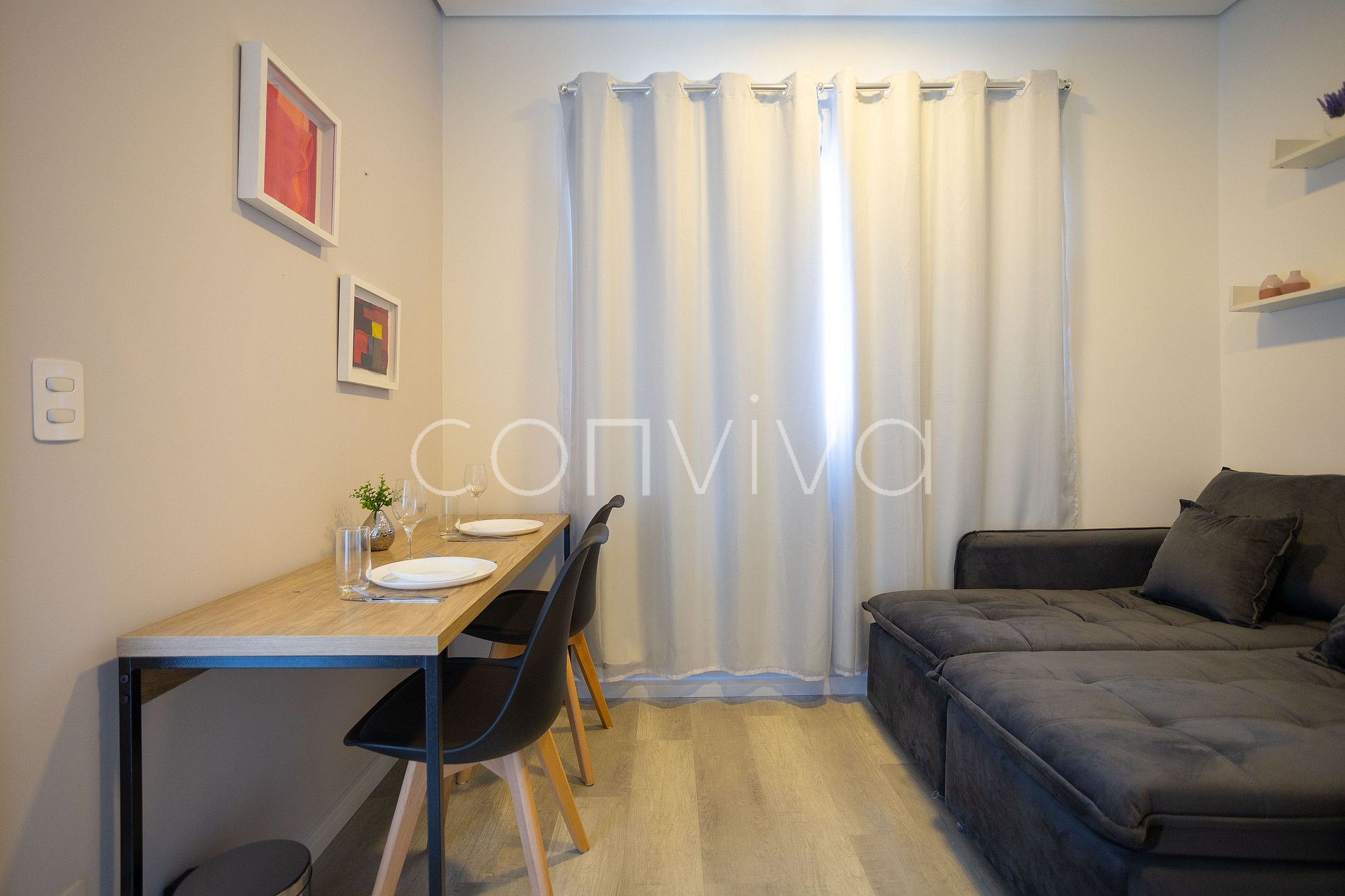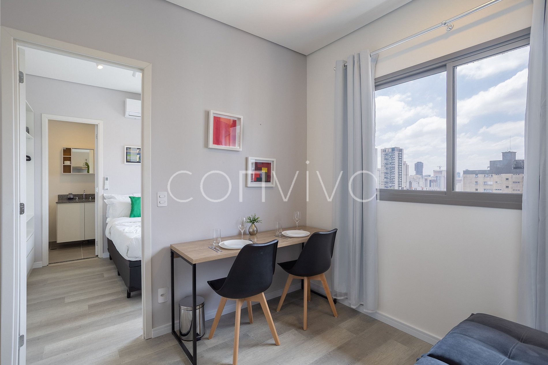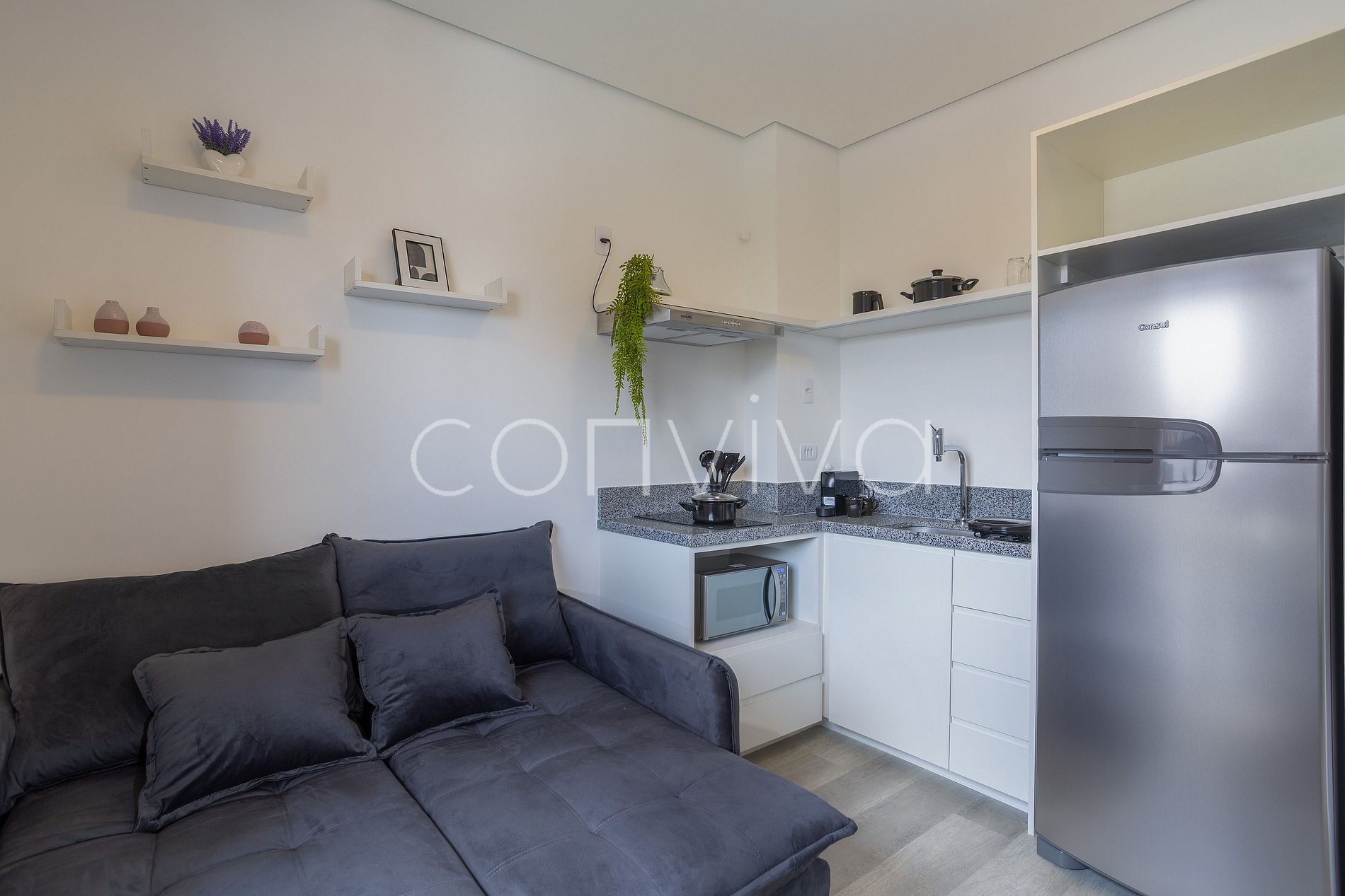 Localizado no charmoso bairro Chácara Santo Antônio, São Paulo. Este apartamento moderno de 27m² no 10º andar oferece conforto e praticidade para sua estadia a lazer ou negócios, a apenas 1 km do Consulado Americano.