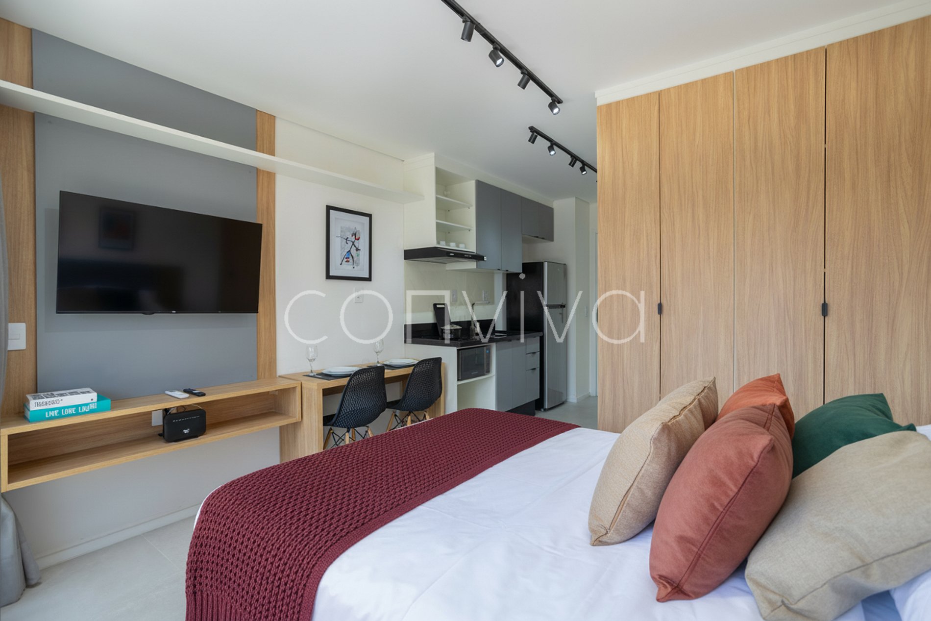 Desfrute de uma cama casal aconchegante, cozinha compacta equipada para refeições , banheiro moderno e uma varanda privativa com vista. Localização estratégica com fácil acesso a comércios, restaurantes e transporte público. Perfeito para casais, viajantes de negócios ou quem busca uma estadia confortável e bem localizada.