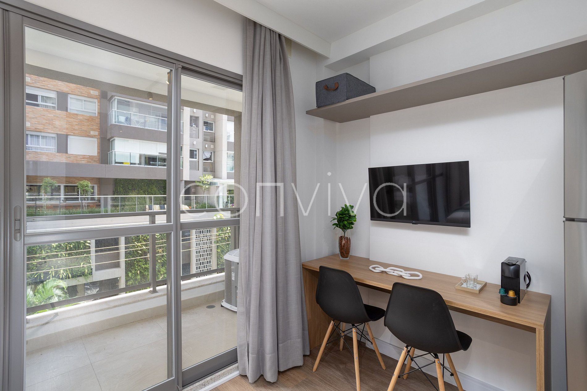Hospede-se no Brooklin/Jardim das Acácias, a poucos minutos do Metrô Brooklin, em um studio moderno de 27m², no 3º andar — perfeito para viagens de negócios, eventos e também para quem quer explorar a cidade.