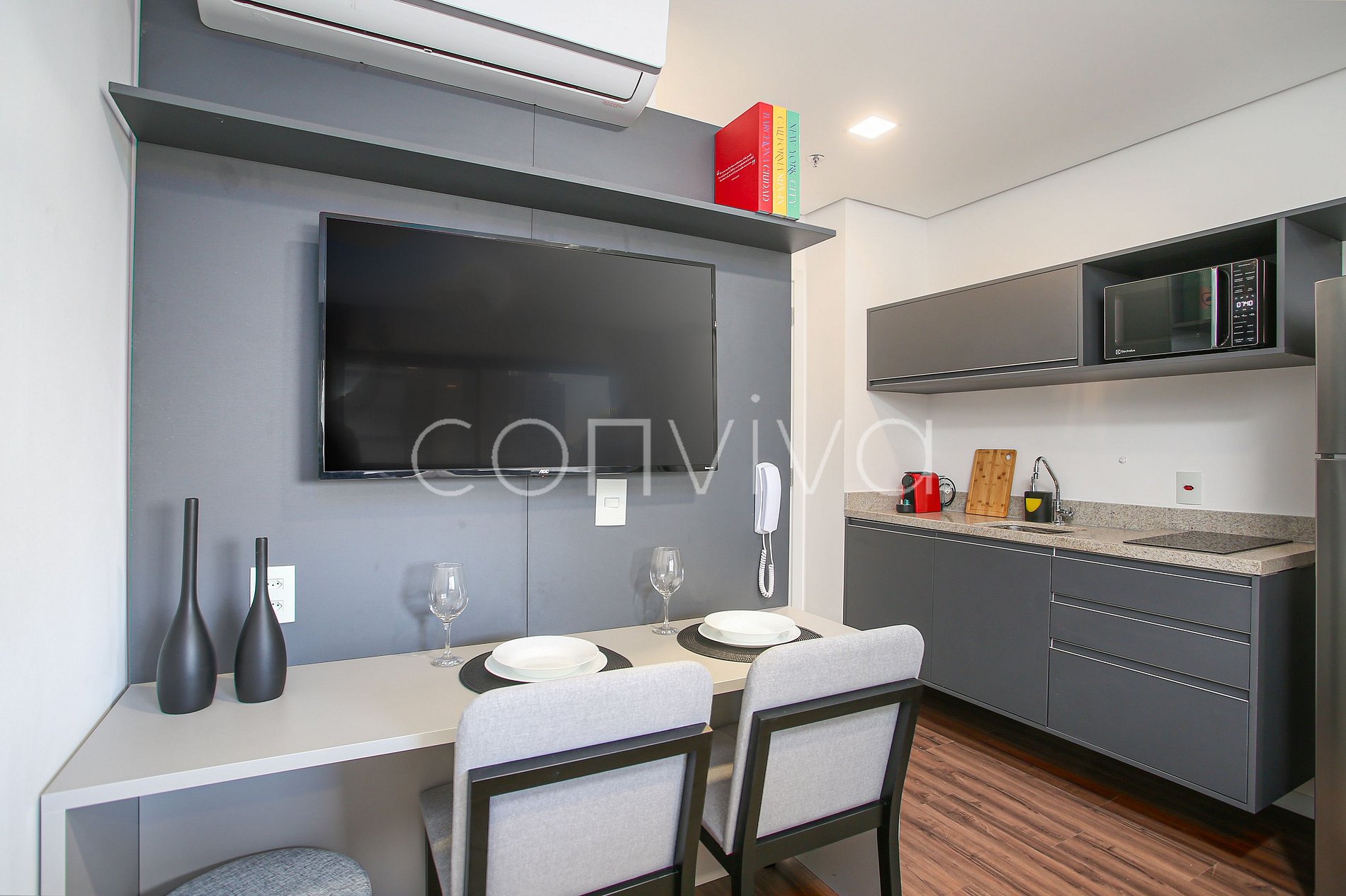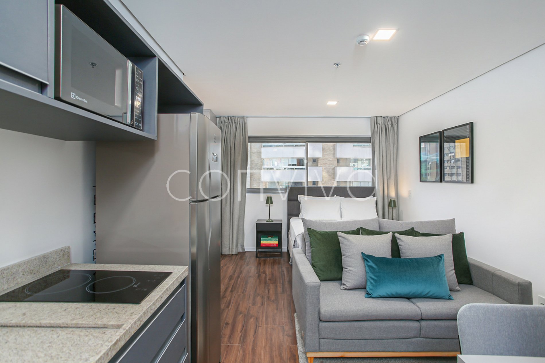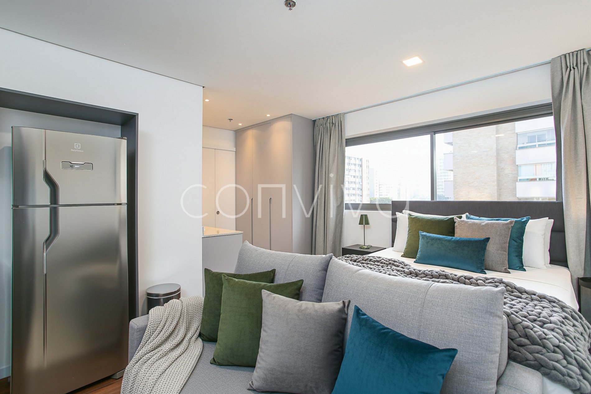 Seja bem-vindo ao studio charmoso da Vila Mariana, um apartamento moderno de 28m² no 6º andar do Edifício Arte Arquitetura, perfeito para quem vem a São Paulo a trabalho ou lazer!