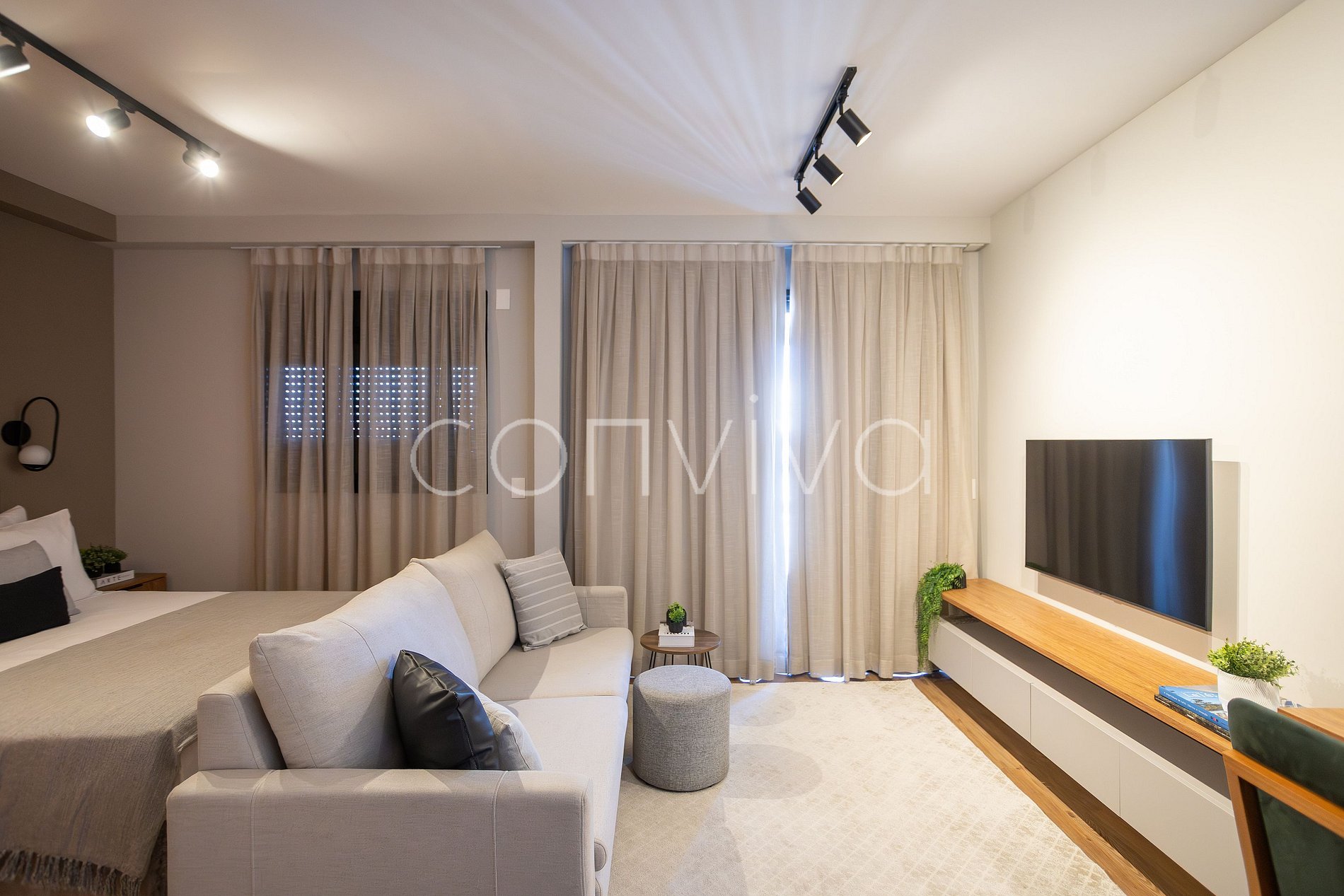 • Ar-condicionado na sala e no quarto;