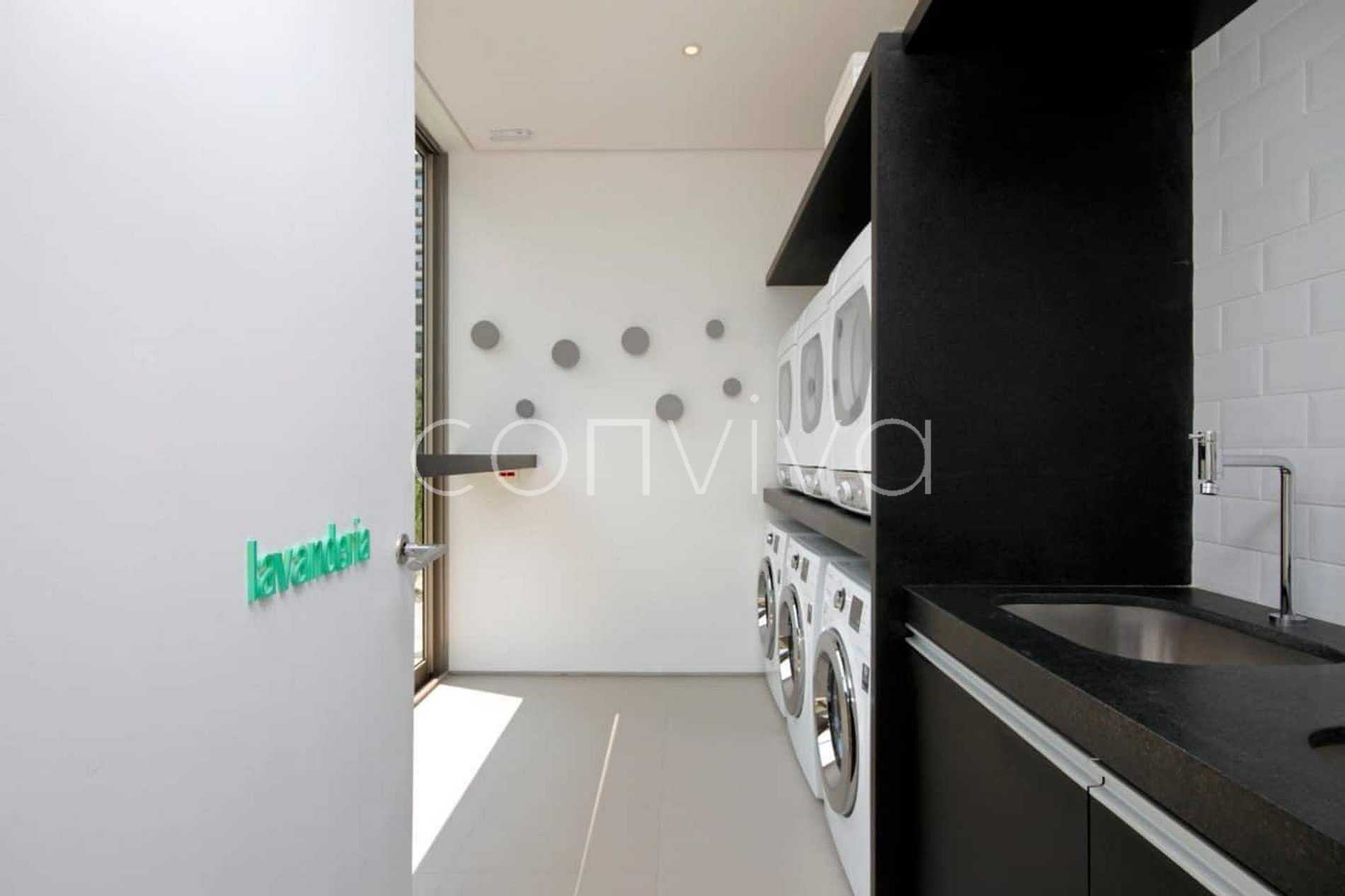 Há uma lavanderia coletiva que pode ser utilizada mediante compra de créditos no aplicativo.