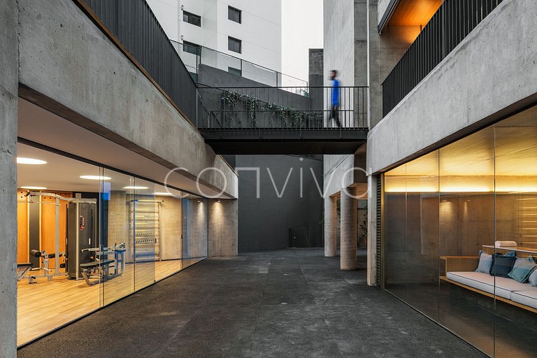 Um projeto assinado pelo premiado escritório Una Arquitetos, com fachada de inspiração modernista harmonizando concreto e vidro, privilegiado pela luz natural que invade os ambientes através das paredes de vidro e escotilhas. Dispõe de portaria 24 horas, academia, piscina e lavanderia no prédio.