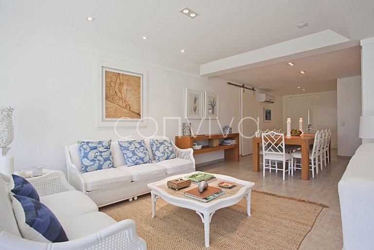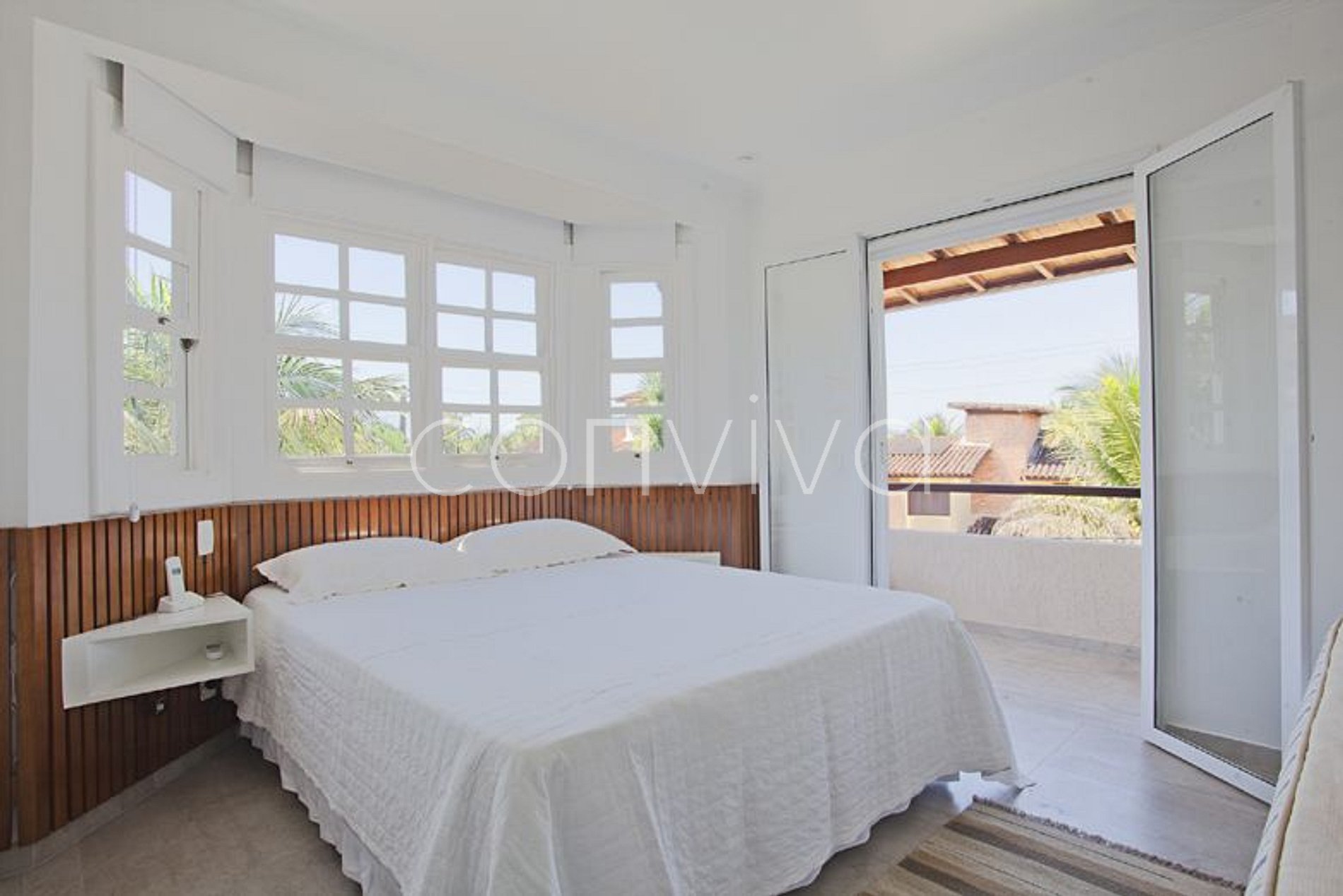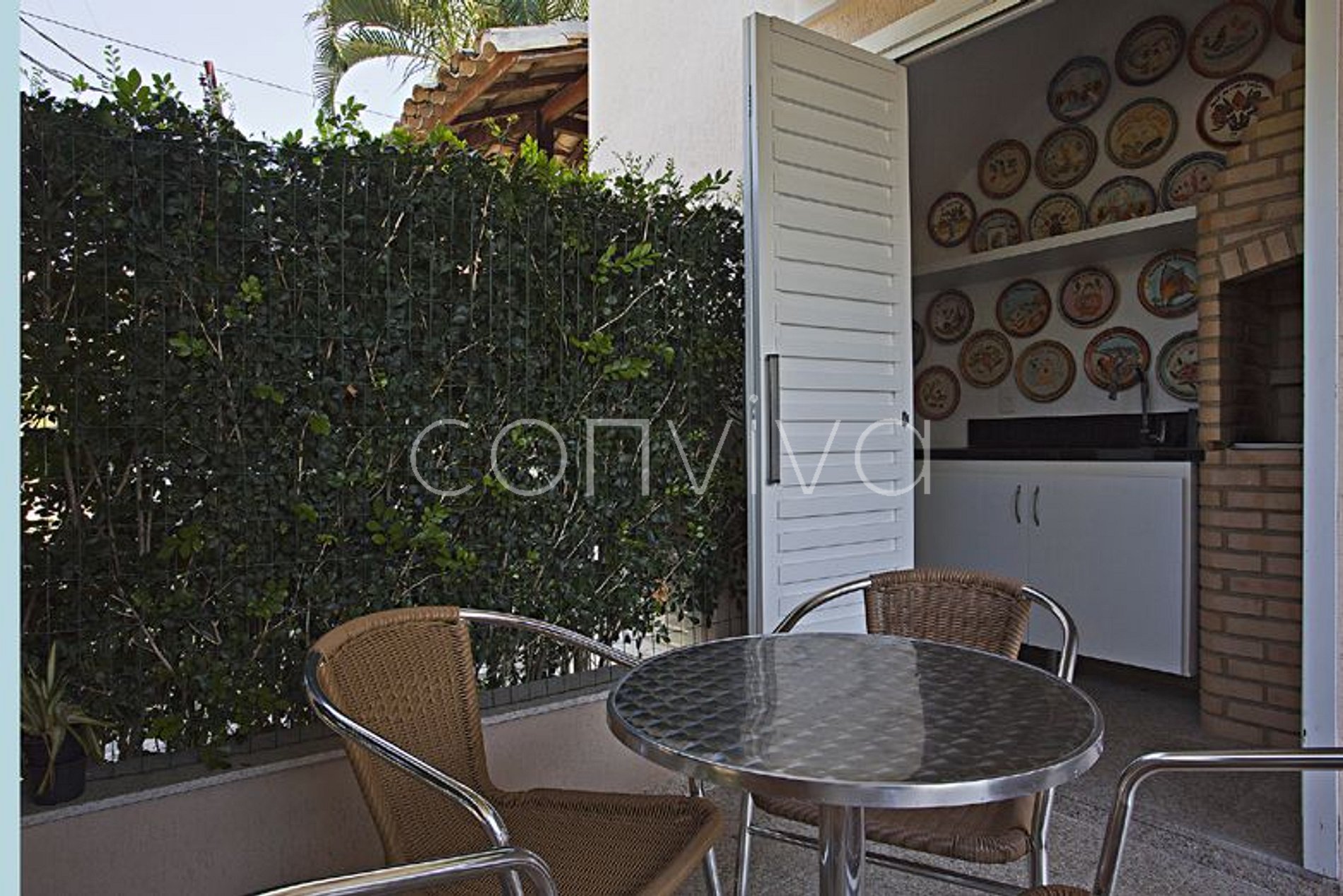 Decoração clean e aconchegante. A casa possui 4 suites e 1 sala/suíte reversívelm sala com 3 ambientes com lavabo e vista para o lago. No quintal, uma piscina com solário, churrasqueira e freezer para bebidas. Casa geminada, possui escadas.