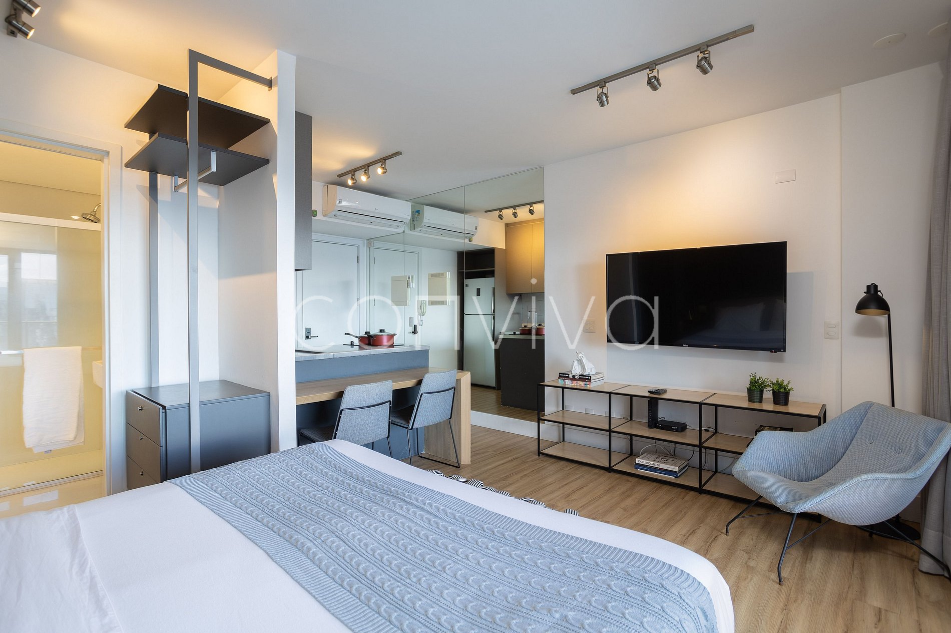 Viva a experiência de morar no Itaim Bibi, studio de 45m² com design contemporâneo. Localizado no 23º andar no icônico Edifício Forma Itaim, você estará a poucos passos dos melhores restaurantes e centros corporativos de SP, com ar-condicionado e lazer de alto padrão.