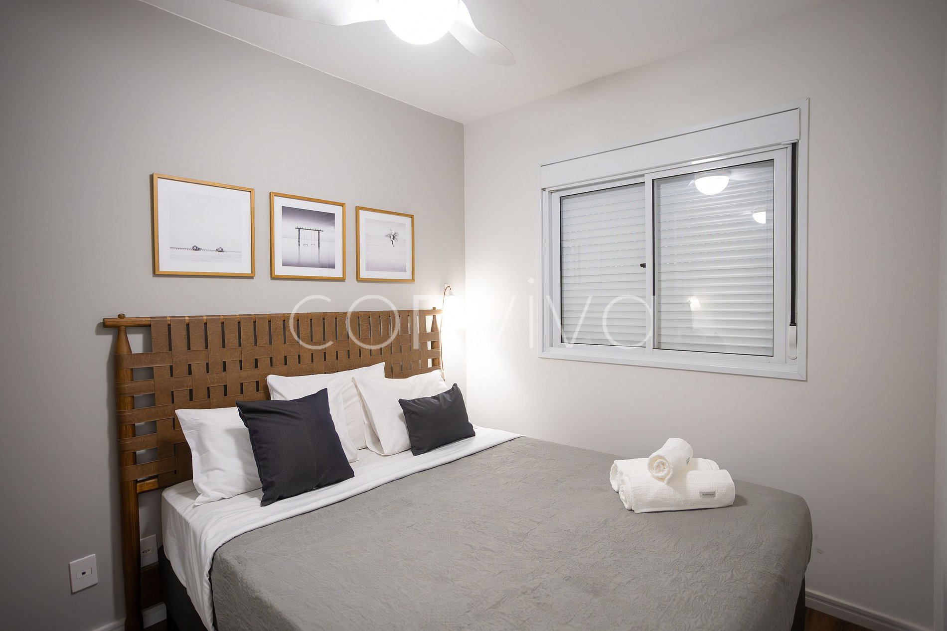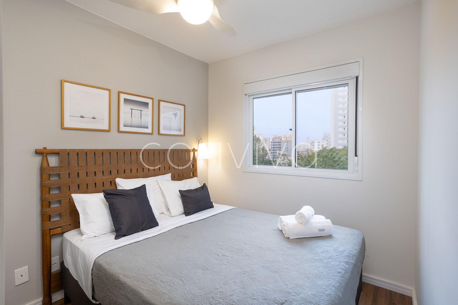 Um apê moderno de 35 m², com 2 quartos, ideal para até 4 hóspedes, em localização estratégica na Consolação, próximo à Av. Paulista, Shopping Frei Caneca e principais polos de negócios e lazer de São Paulo.